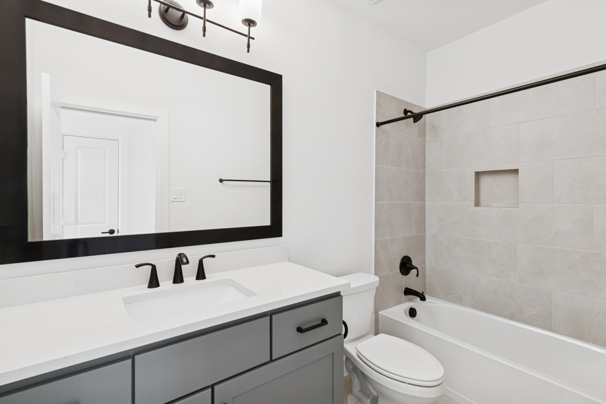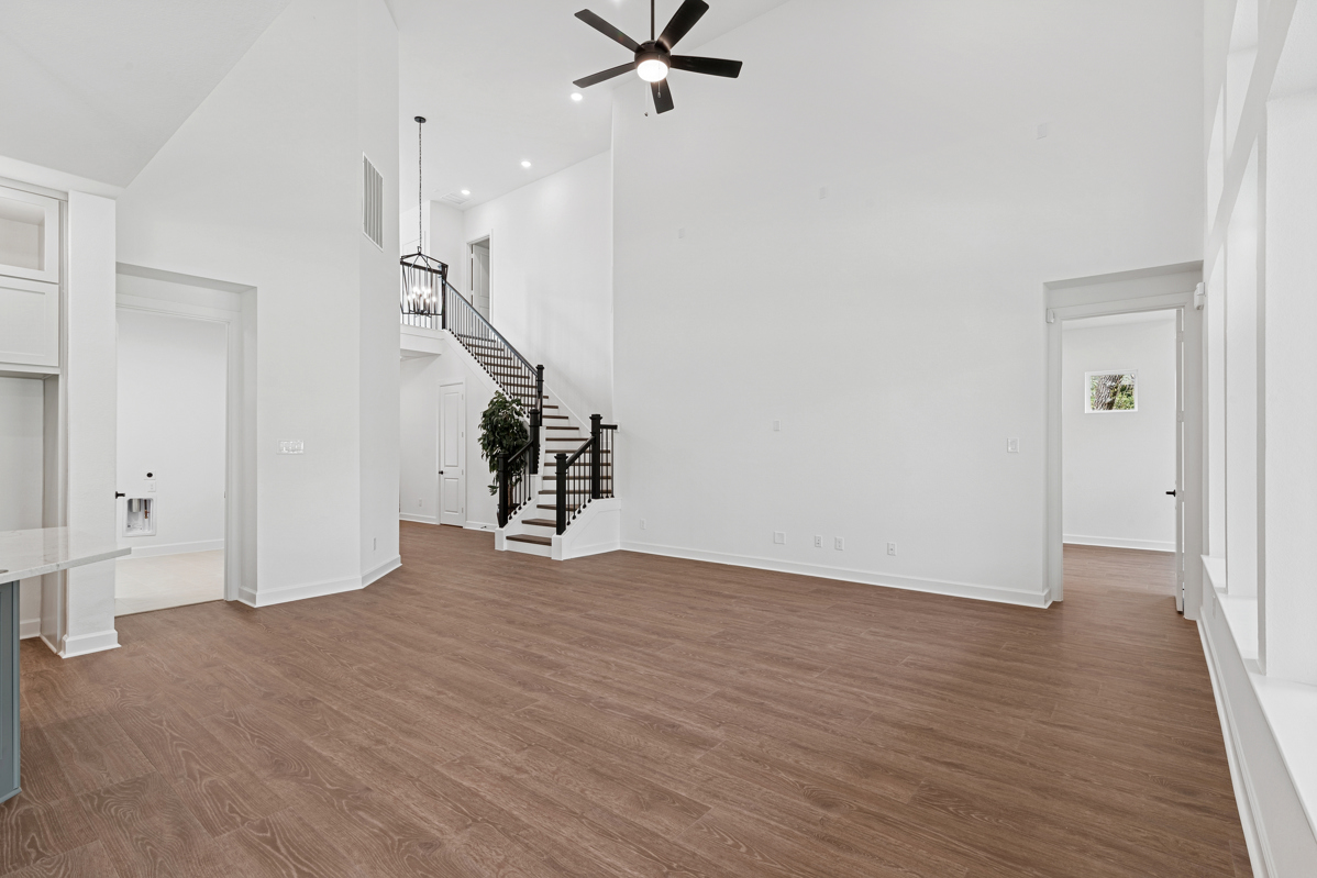 The Dandelion by David Weekley Homes offers stunning design features and thoughtful details throughout, beginning with a dramatic two-story ceiling in the living area. Sliding glass doors span the rear of the home and stack open to reveal views of your spacious backyard and a natural wall of trees, creating a seamless indoor-outdoor experience.