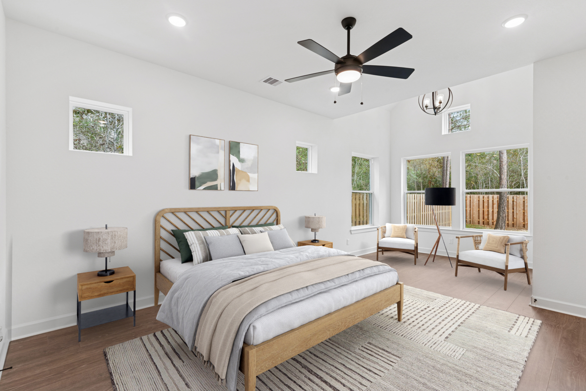This home is designed with energy efficiency in mind, including a conditioned attic space, tankless water heater, and six-inch perimeter walls that offer approximately 40% more insulation than standard two-by-four construction.