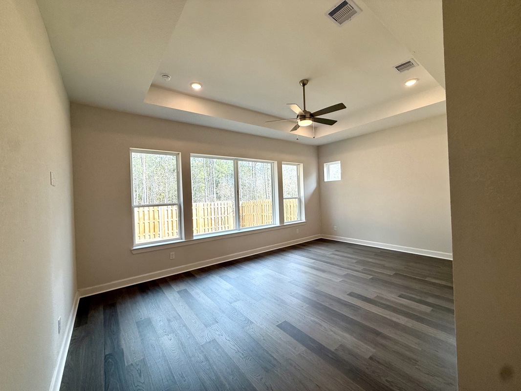 Relax in your Owner’s Retreat with a tray ceiling, dual closets, and a spa style shower with a rain head. The secondary bedrooms each include private baths and share an additional room that can serve as a TV room, workout room, or second study.