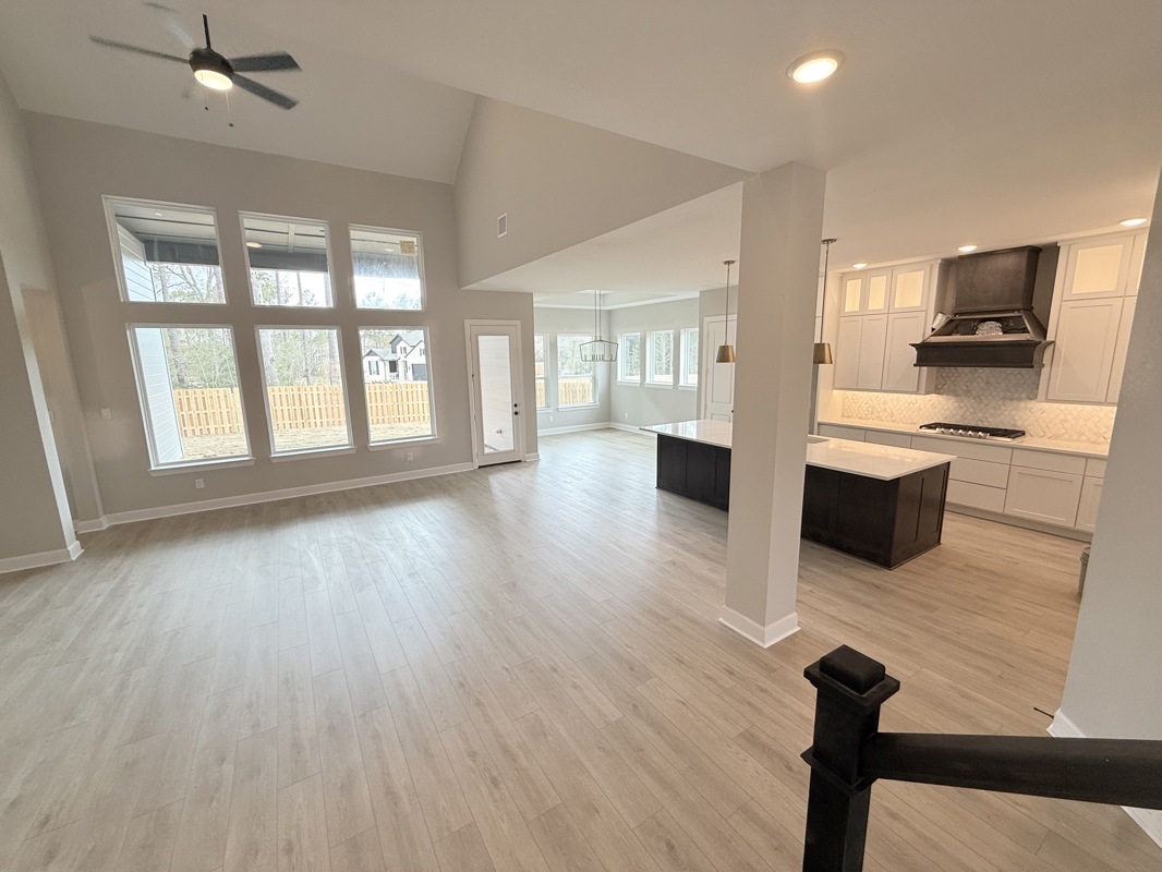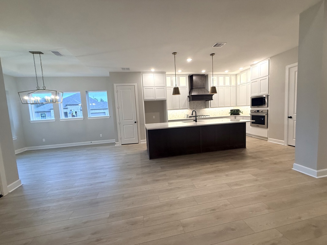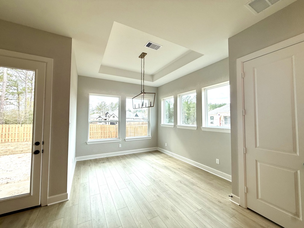 The gorgeous Kitchen includes cabinets that extend to the ceiling, a large walk in pantry, and a spacious island with a breakfast bar that creates the perfect gathering place for family and friends. The Dining area features a trey ceiling and is surrounded by windows, making mealtimes a bright and relaxing experience.
