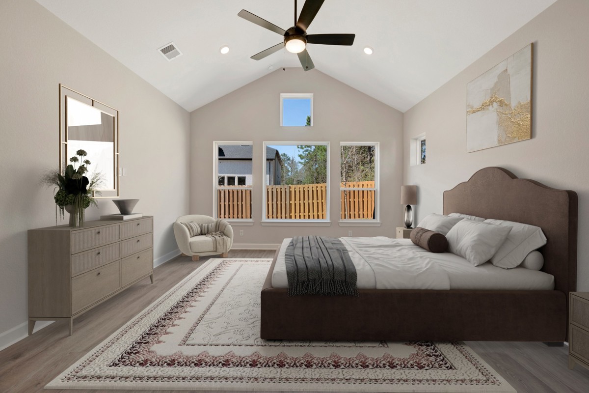 Welcome to your beautiful new home in Colton! This gorgeous Lotus by David Weekley Homes showcases cathedral ceilings in the living area, Owner’s Retreat, and outdoor living space. A trey ceiling elevates the entry, while eight foot solid core doors throughout provide a stately, refined look. Low maintenance vinyl plank flooring enhances all main living areas.