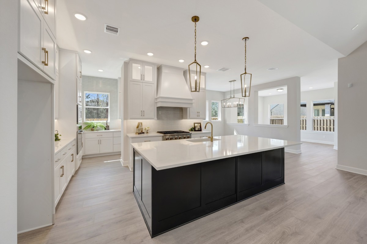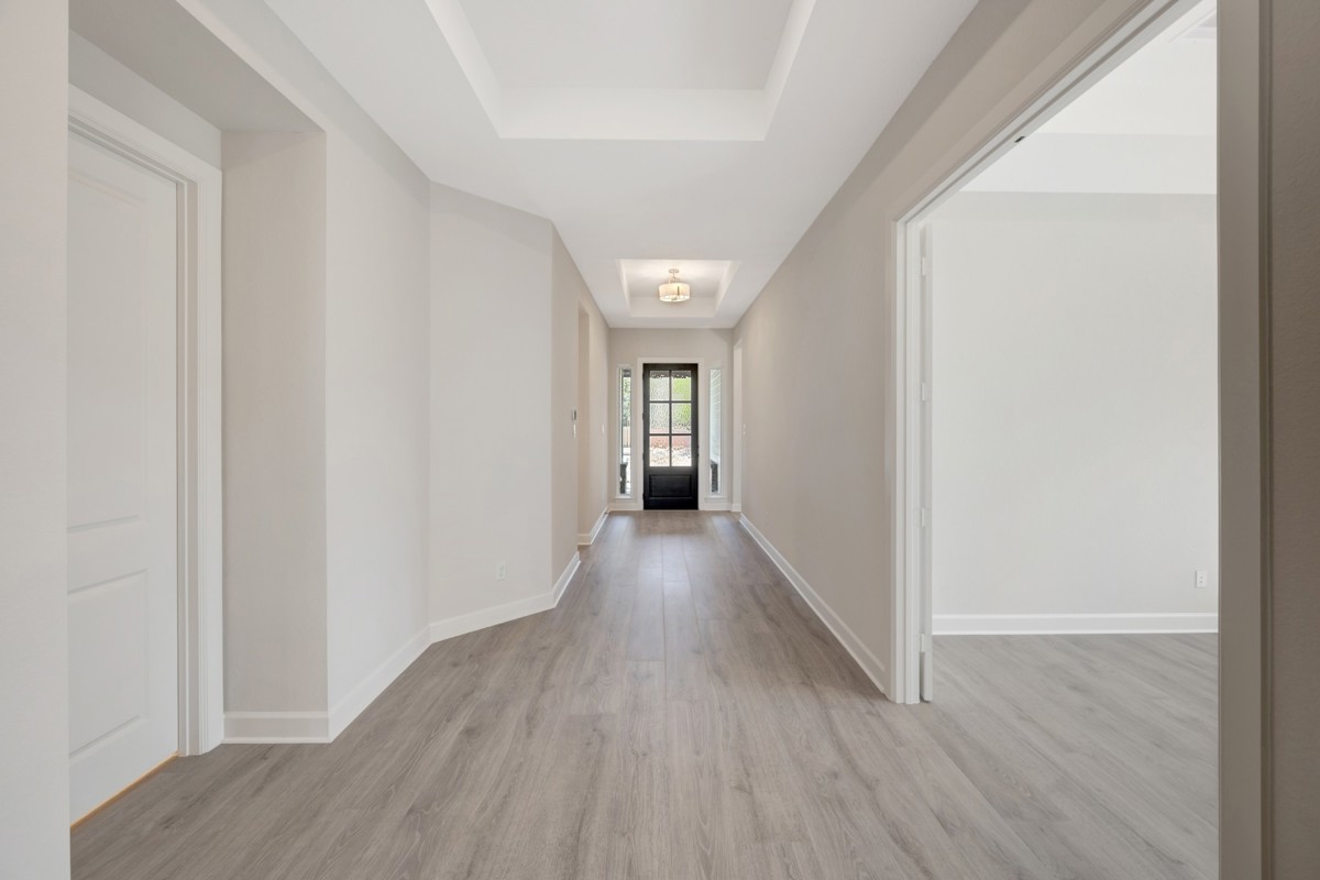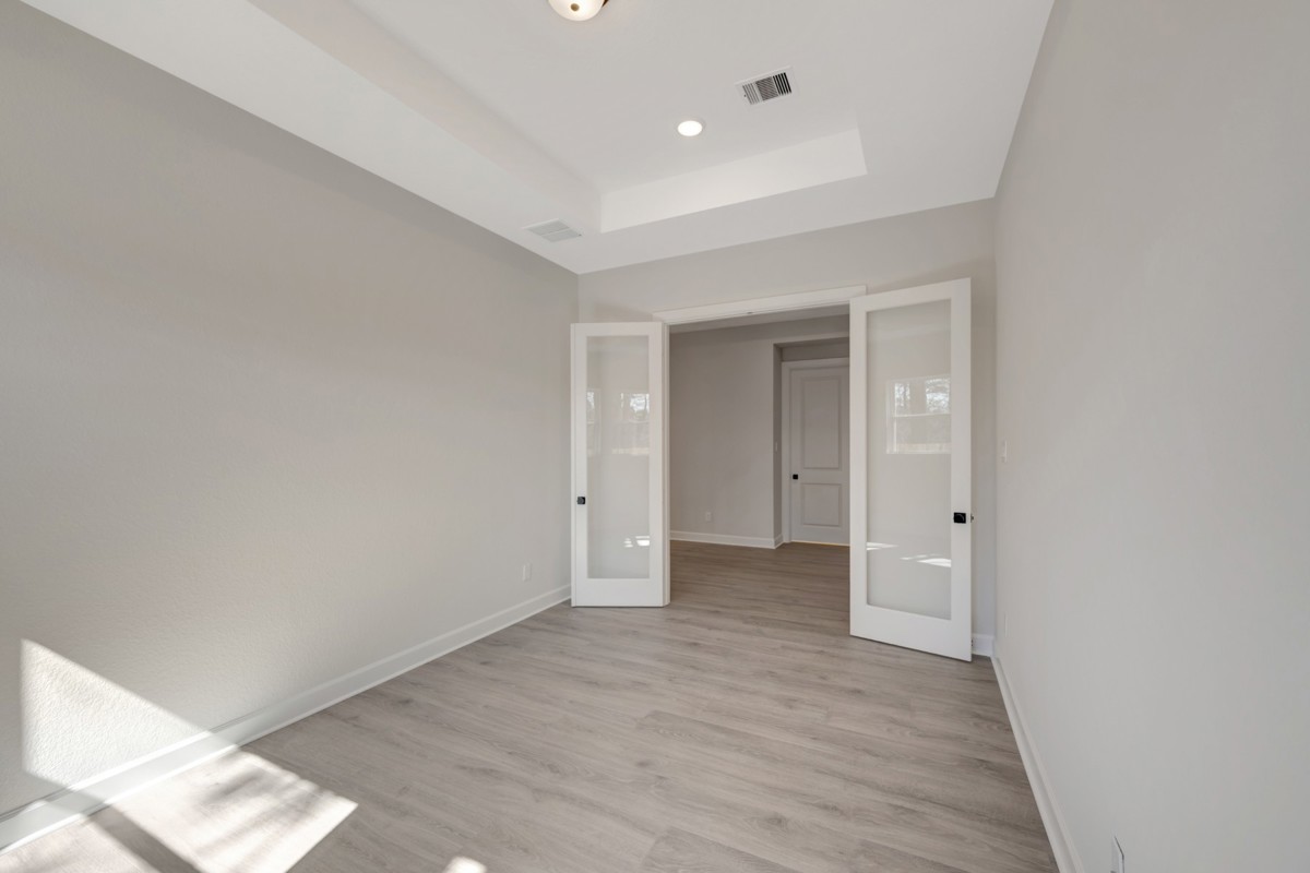 Entering from the garage, you are welcomed into the family foyer with a backpack rack, extra cabinets, and a linen closet that opens directly to the utility room and Owner’s Retreat closets. A private study with glass doors and a trey ceiling creates an ideal workspace. The fourth bedroom includes an en suite bath with a convenient walk in shower. The four car garage provides exceptional storage and versatility.