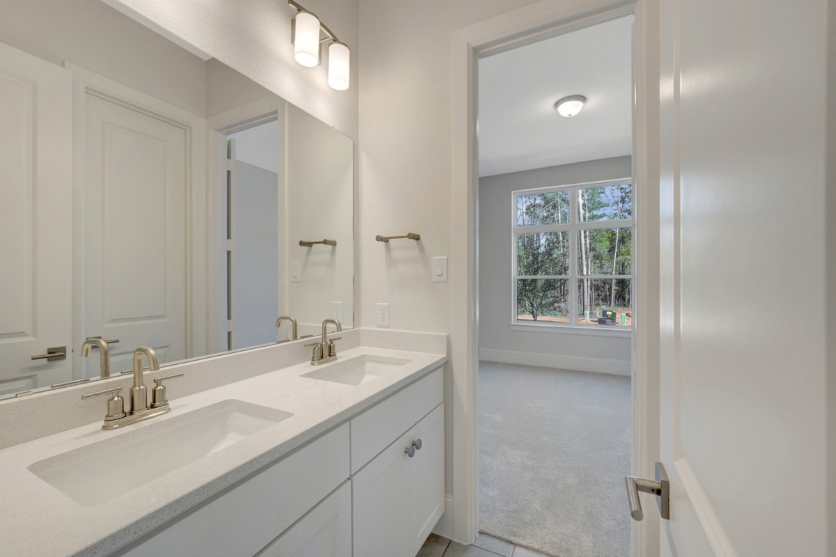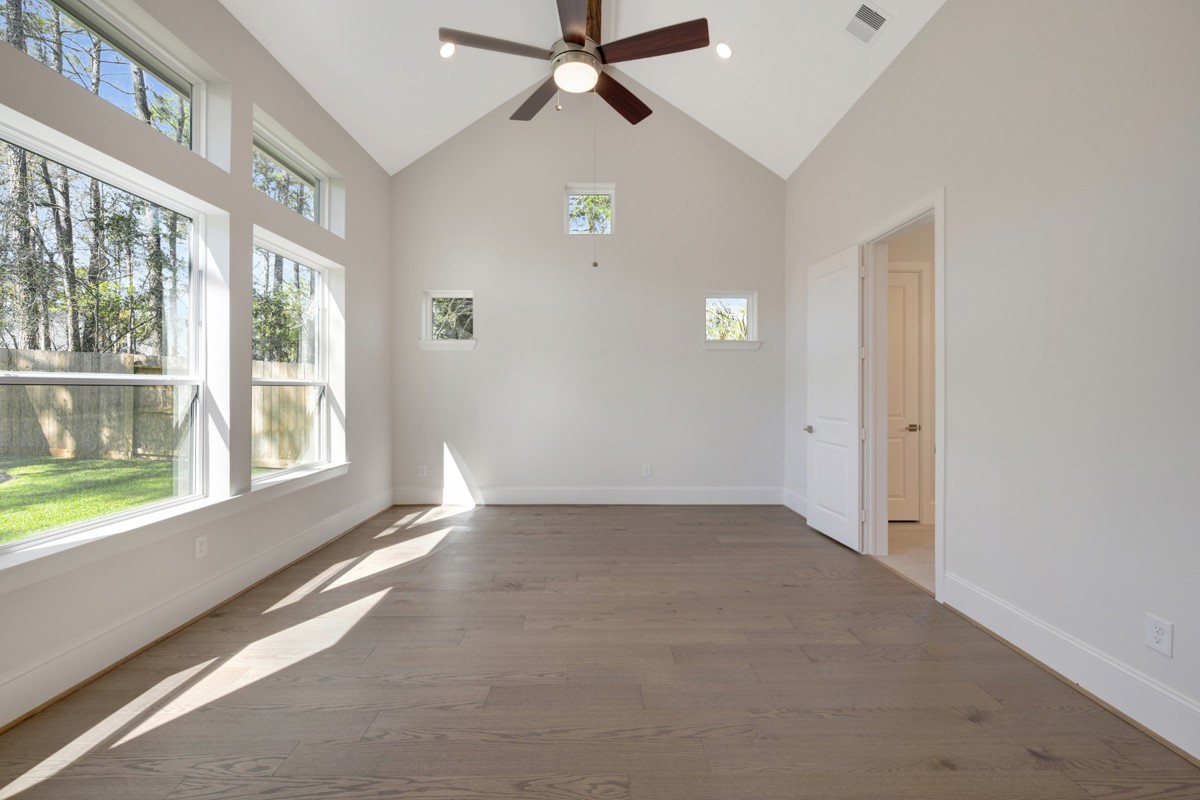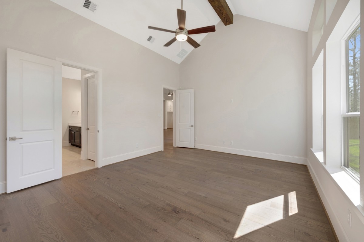 The home includes a private office, a bright sunroom, and an enormous walk-in pantry with cabinetry and shelving throughout. The Owner’s Closet leads directly into the family foyer and utility area for seamless access. The secondary bedroom has a private en suite with a full shower, while bedrooms three and four share a functional Jack and Jill bath.