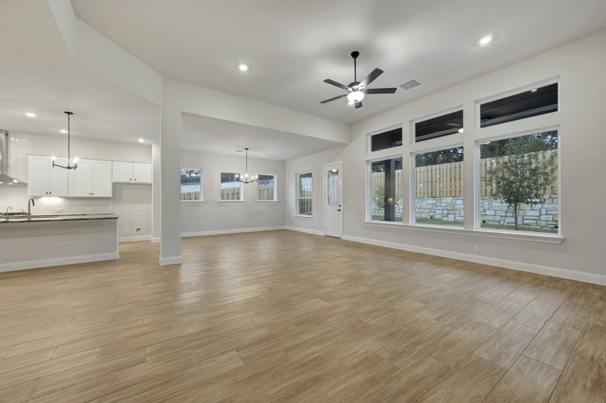Open sight lines and gentle sunlight allow your personal style to shine in the impressive family and dining spaces overlooking the covered porch and backyard.