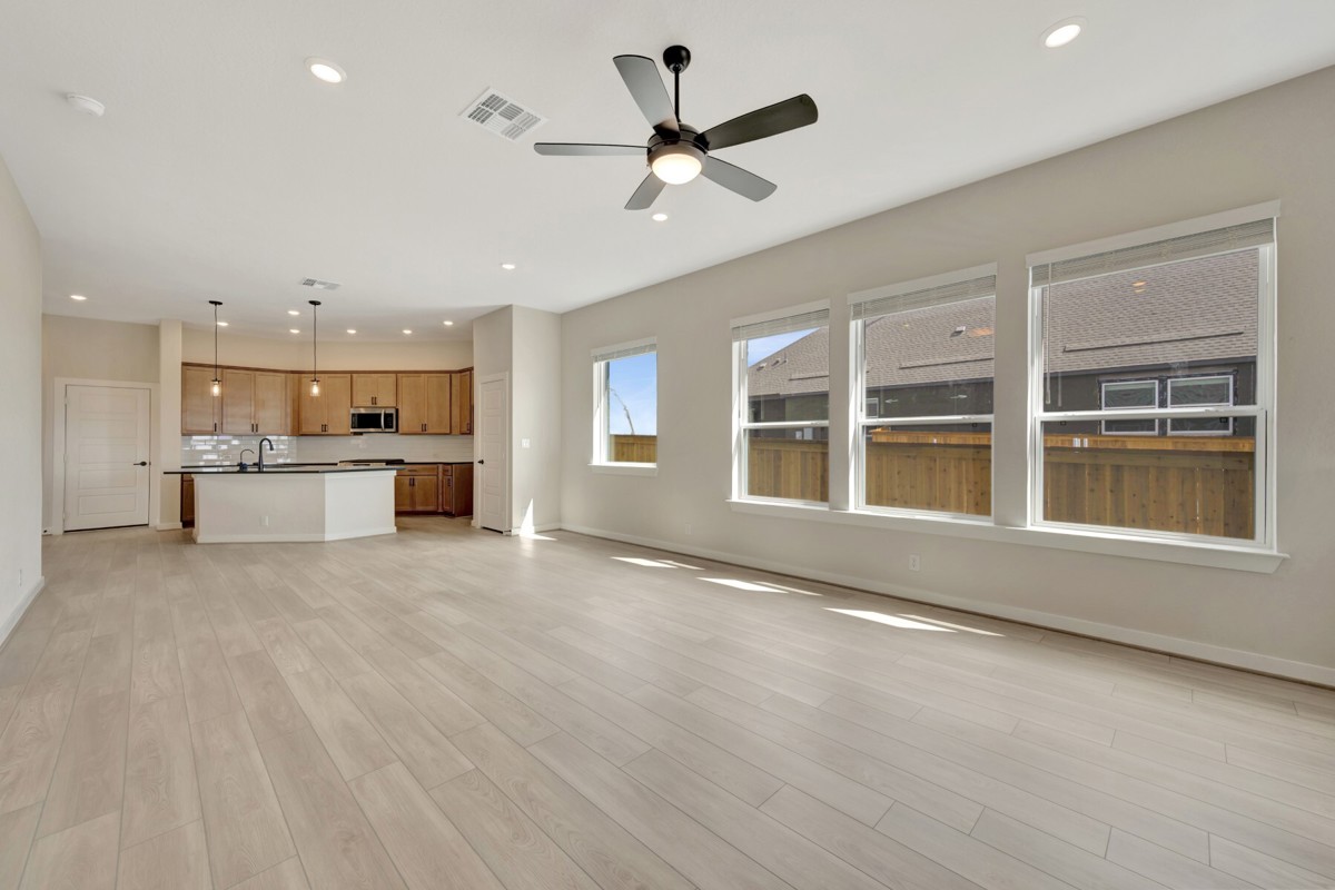 The open floor plan seamlessly connects the living spaces, offering an expansive and airy atmosphere that is perfect for both relaxation and entertaining.