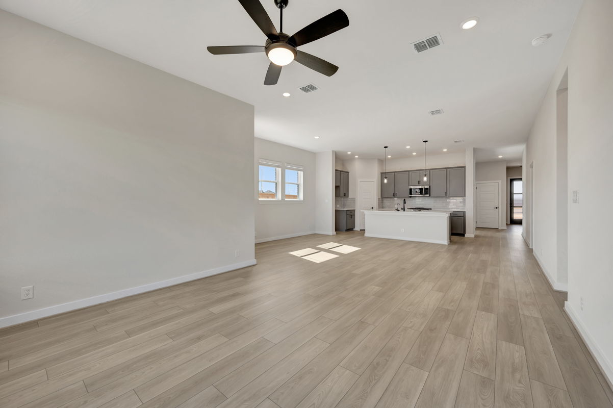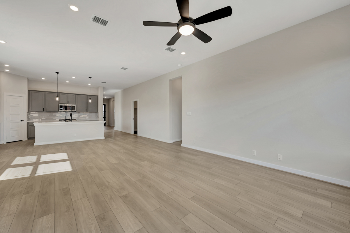 This beautifully designed open-concept floor plan offers the perfect balance of style and functionality. The spacious living room flows seamlessly into the kitchen and dining area, creating an ideal setting for both everyday living and entertaining. The kitchen features modern appliances and ample counter space, while the dining area is perfect for family gatherings.