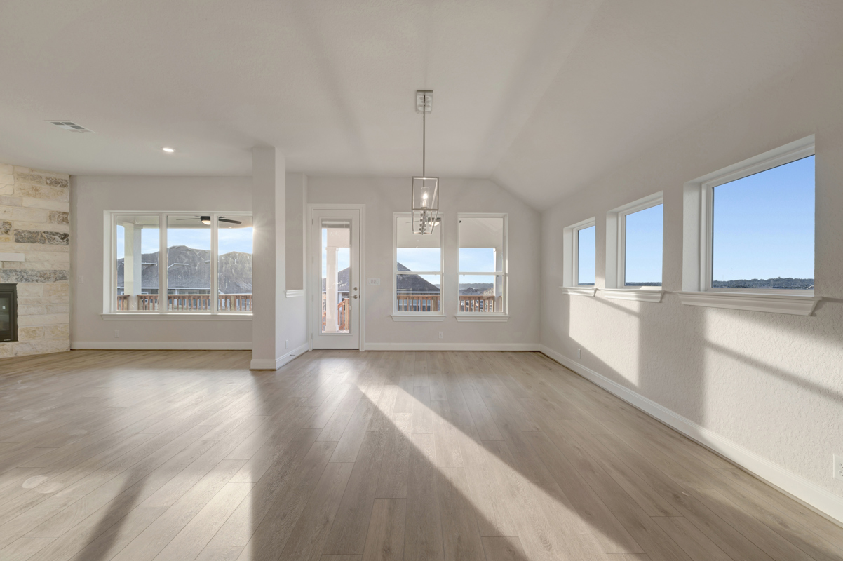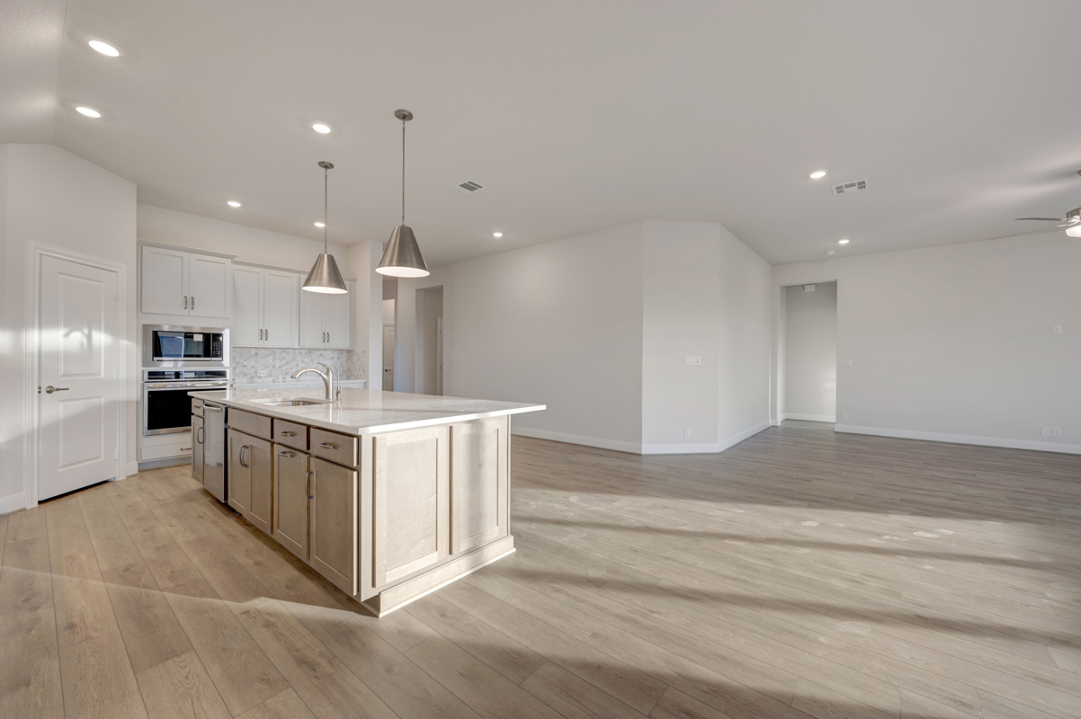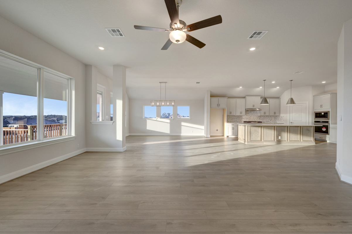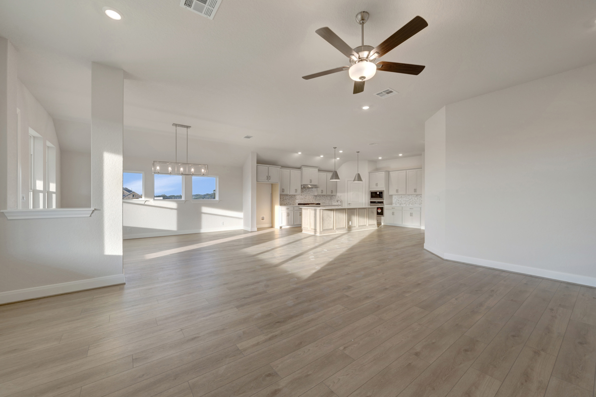 Satin-finished lighting fixtures add a sleek, modern touch throughout the home. The spacious family room flows effortlessly into the dining and kitchen areas, creating an inviting setting for entertaining and everyday living.