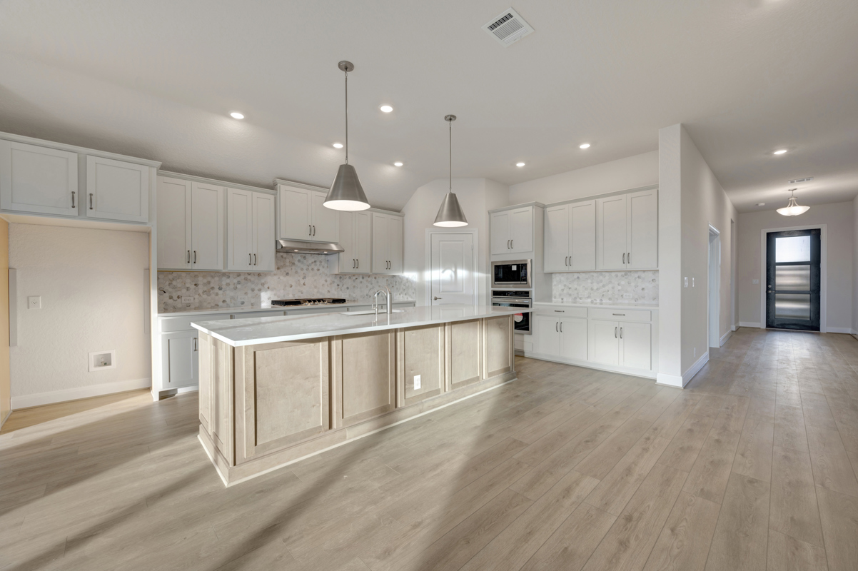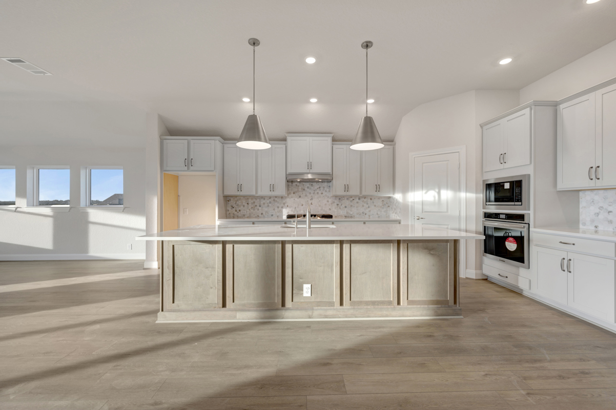Step inside to a sunlit, open-concept living space that blends style and functionality. The gourmet kitchen showcases two-toned cabinets, a striking island that anchors the room and elegant quartz countertops.