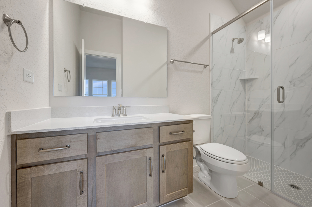 Bedroom 4 includes its own en suite bath with a full-size shower instead of a bathtub, making it ideal for guests or extended family. A three-car garage provides ample storage and everyday convenience.