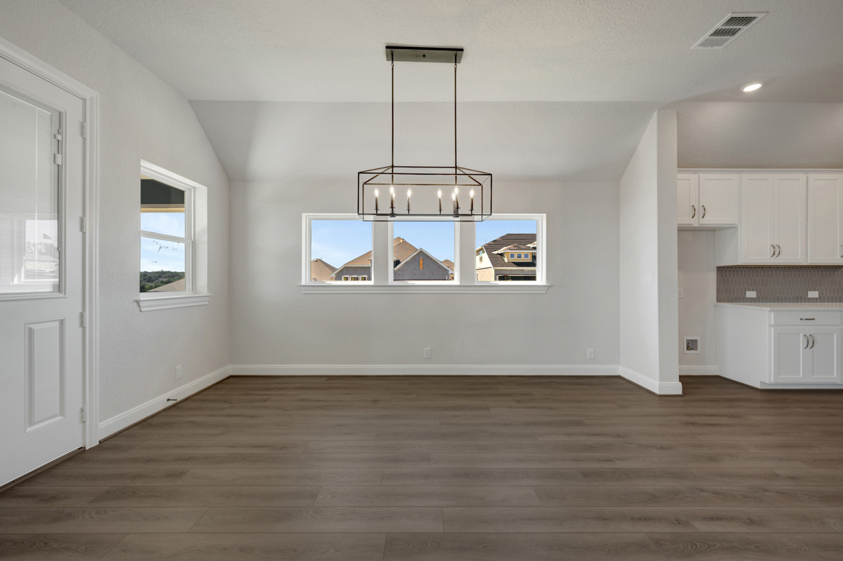 Inside, the open-concept layout is filled with natural light, blending warmth and sophistication through carefully selected Design Center finishes. A stunning stone fireplace anchors the main living area, creating a welcoming focal point ideal for both everyday comfort and memorable gatherings. Luxury plank vinyl flooring flows seamlessly throughout the main living spaces and continues into the Owner's Retreat, offering both durability and elevated style.