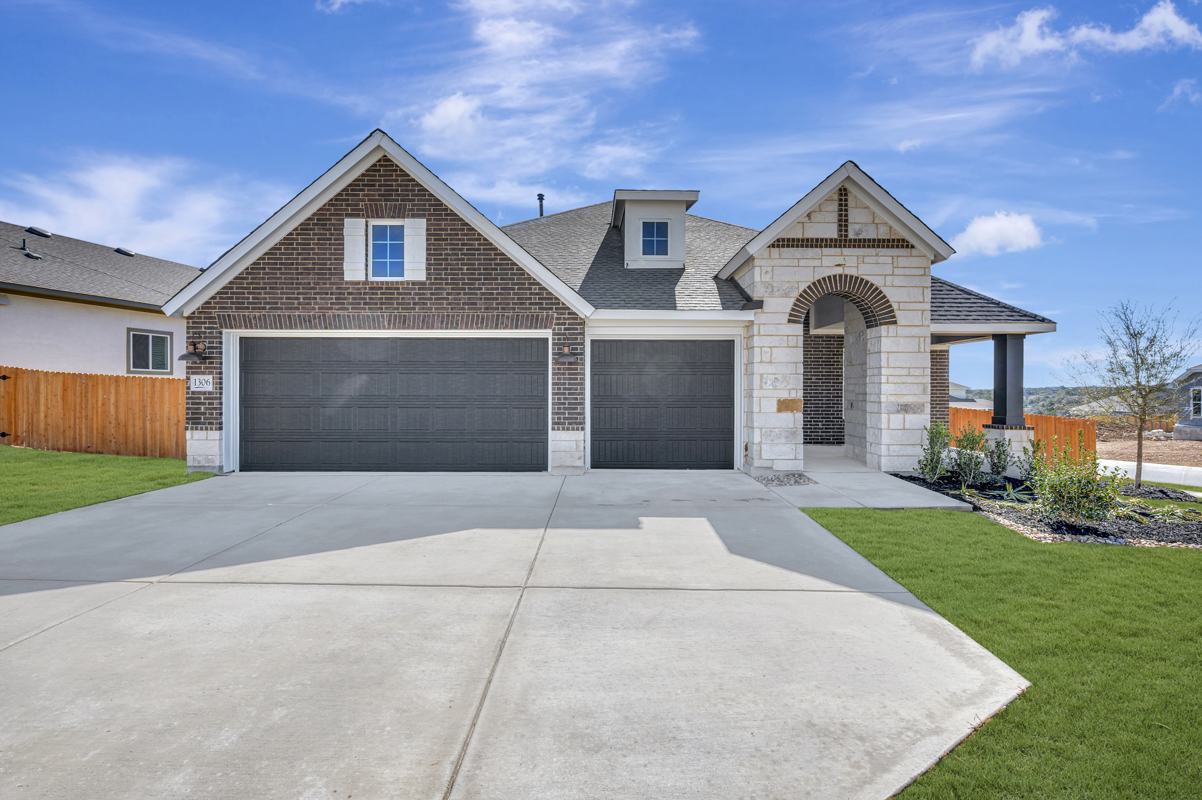 1306 Webb Creek presents the Fairlane with a timeless brick and stone Hill Country elevation, perfectly positioned on a near quarter-acre homesite with breathtaking Hill Country views. With both front and back porches, this home invites you to slow down, step outside, and truly enjoy the beauty of Meyer Ranch living.
