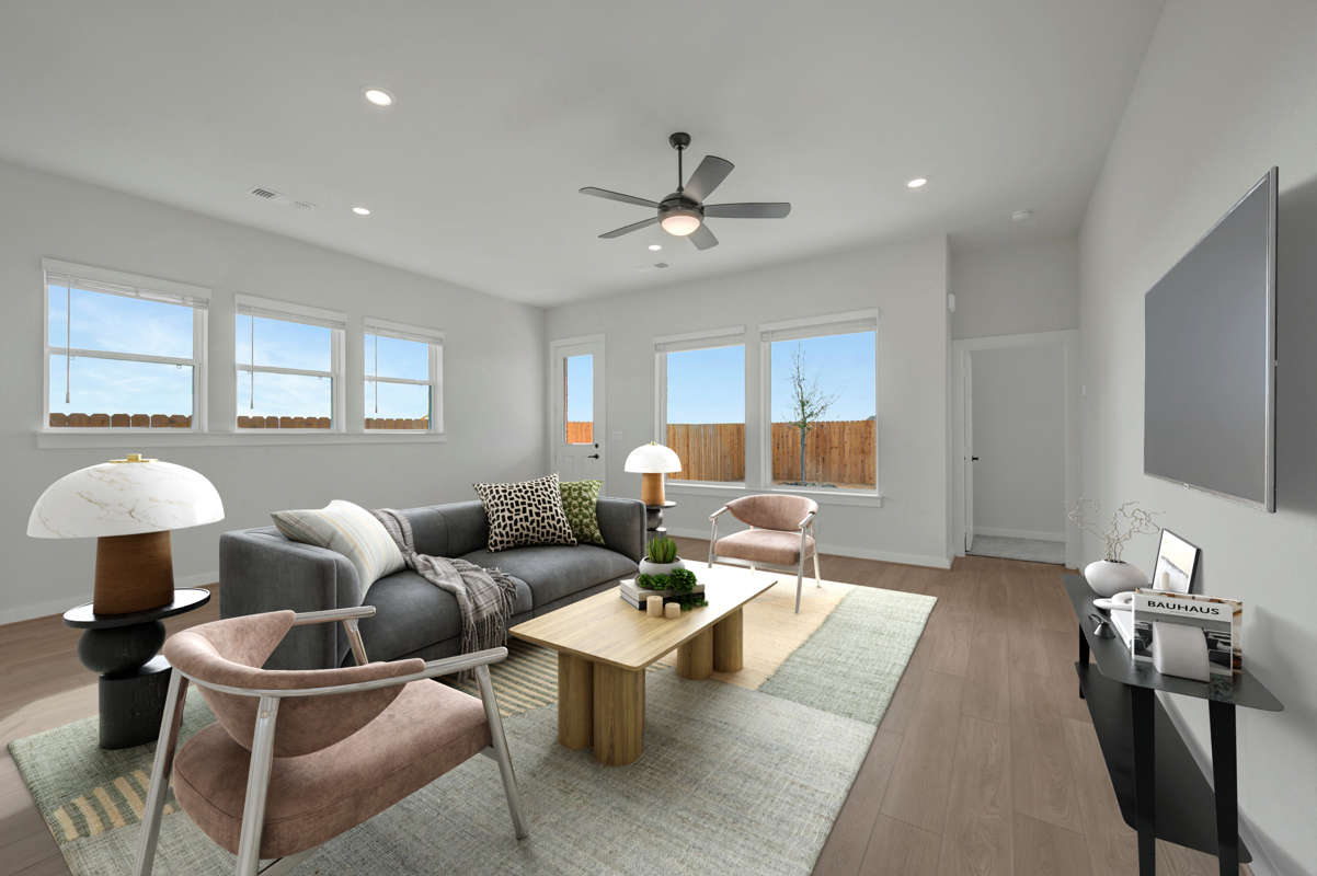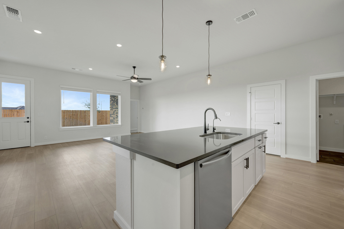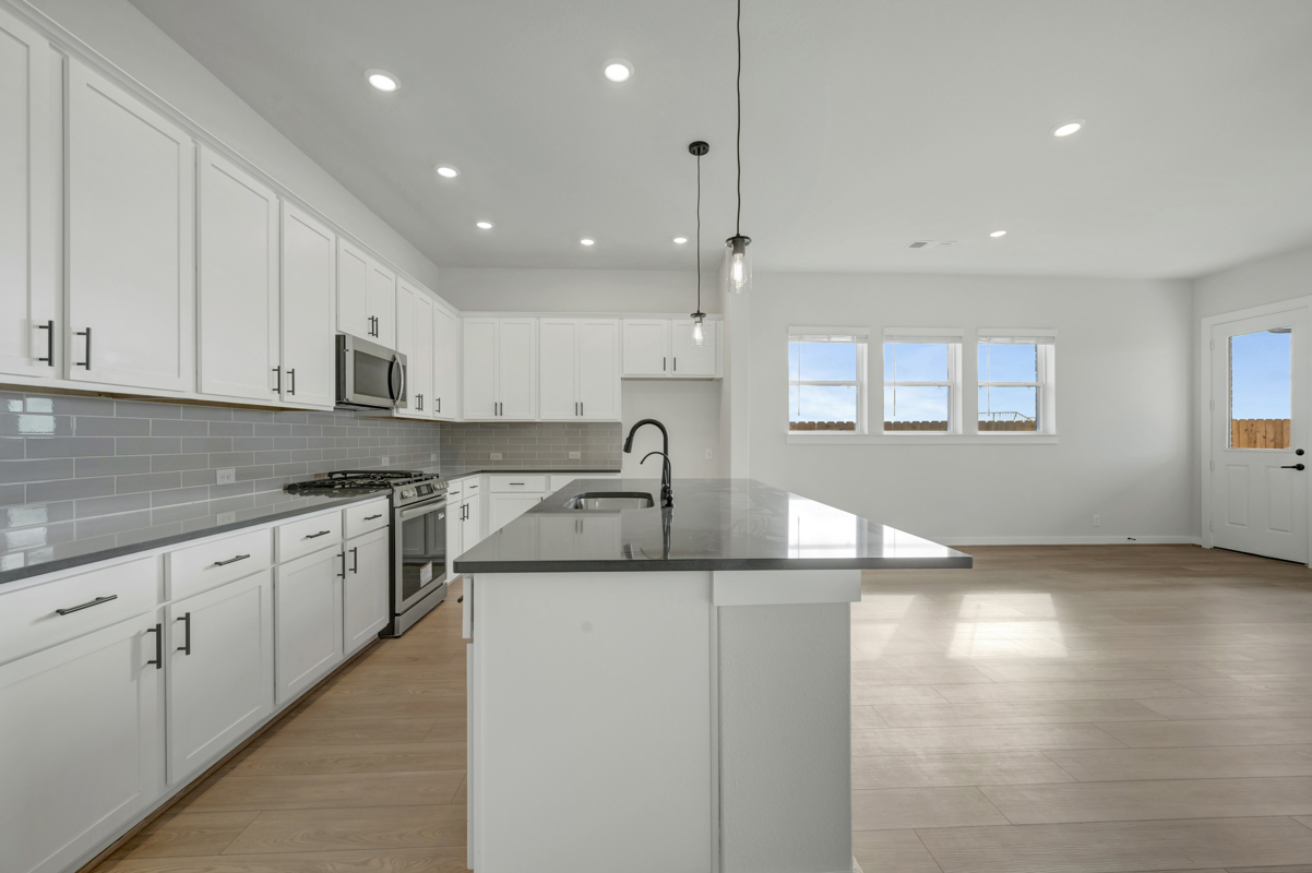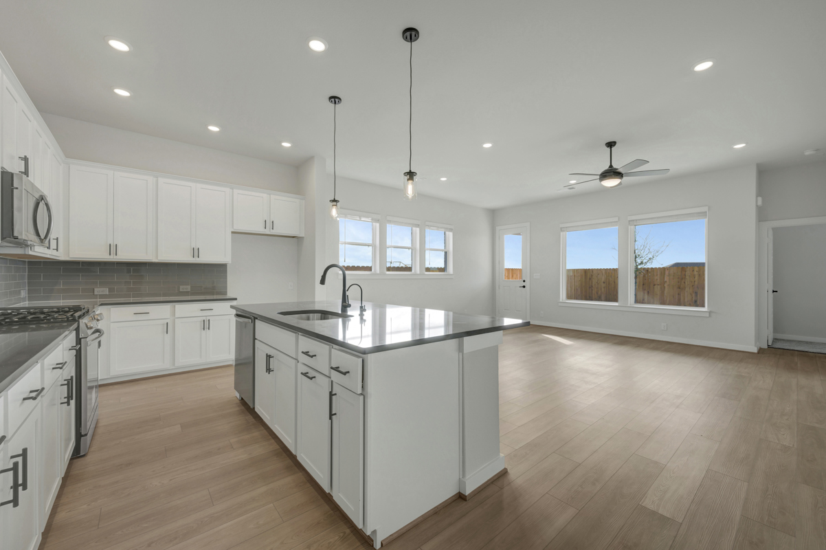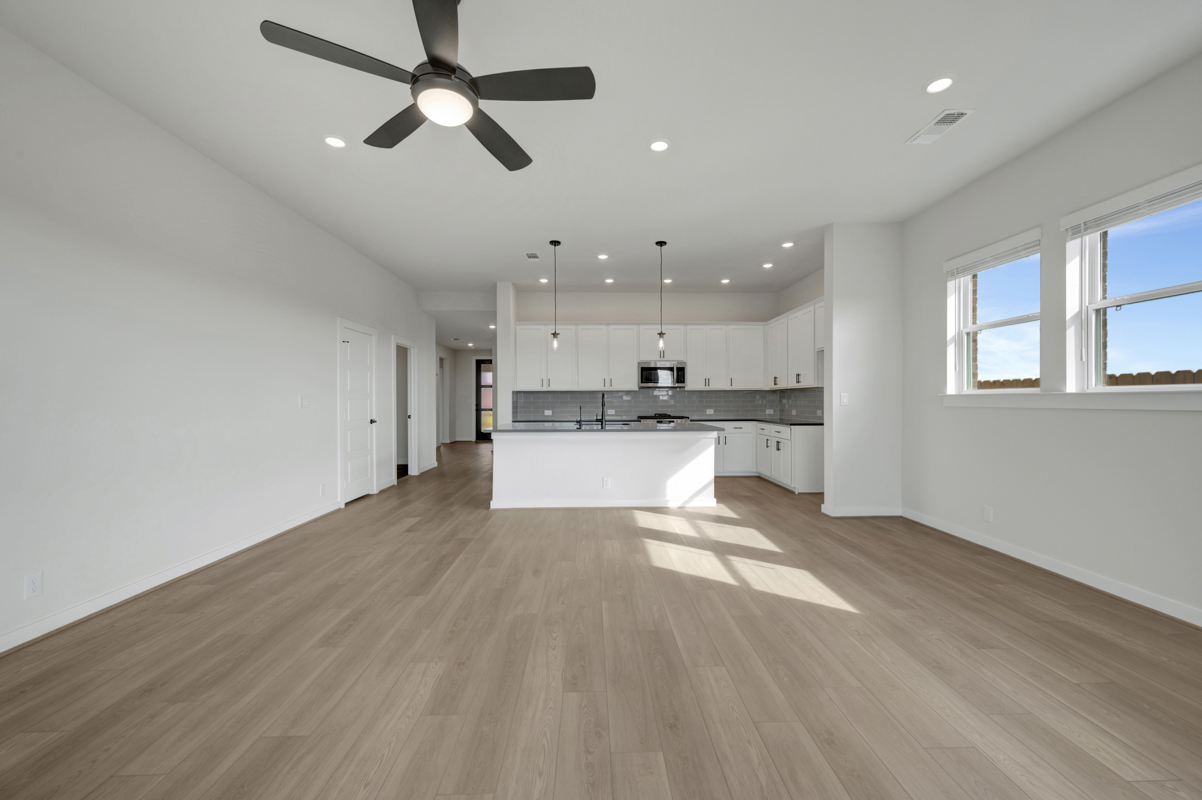 The Poppy by David Weekley Homes in Briggs Ranch blends timeless luxury with top-quality craftsmanship to create a uniquely welcoming single-family home. Vibrant space and limitless potential make the open family and dining areas a decorator’s dream.