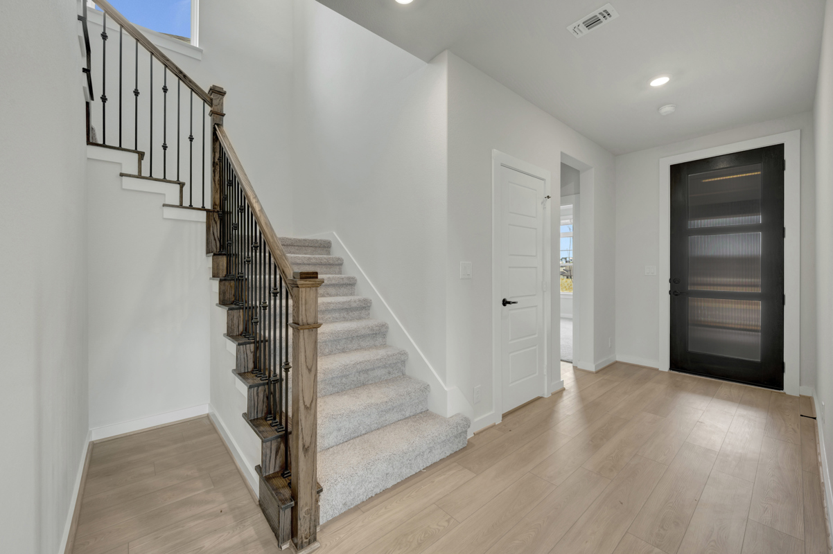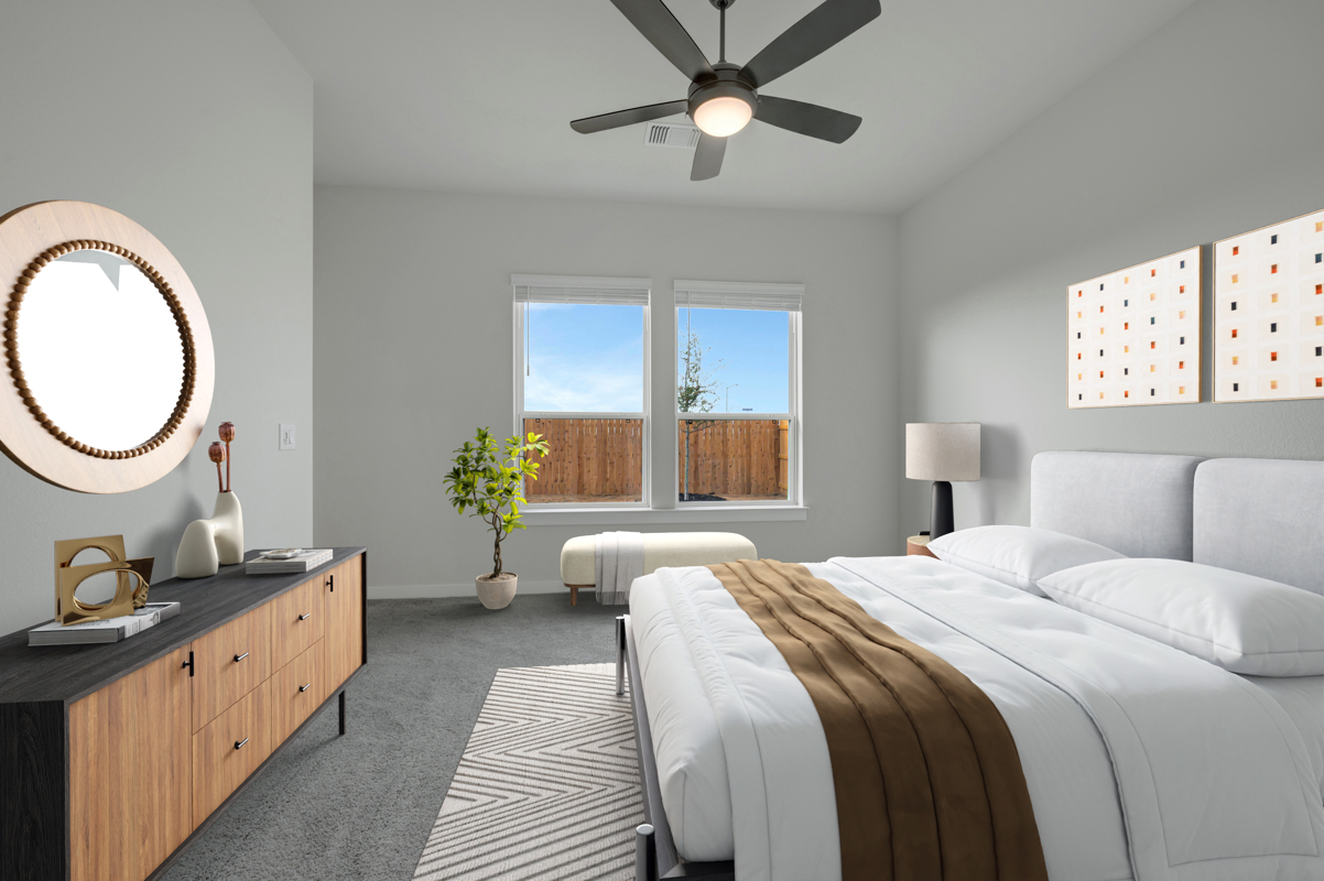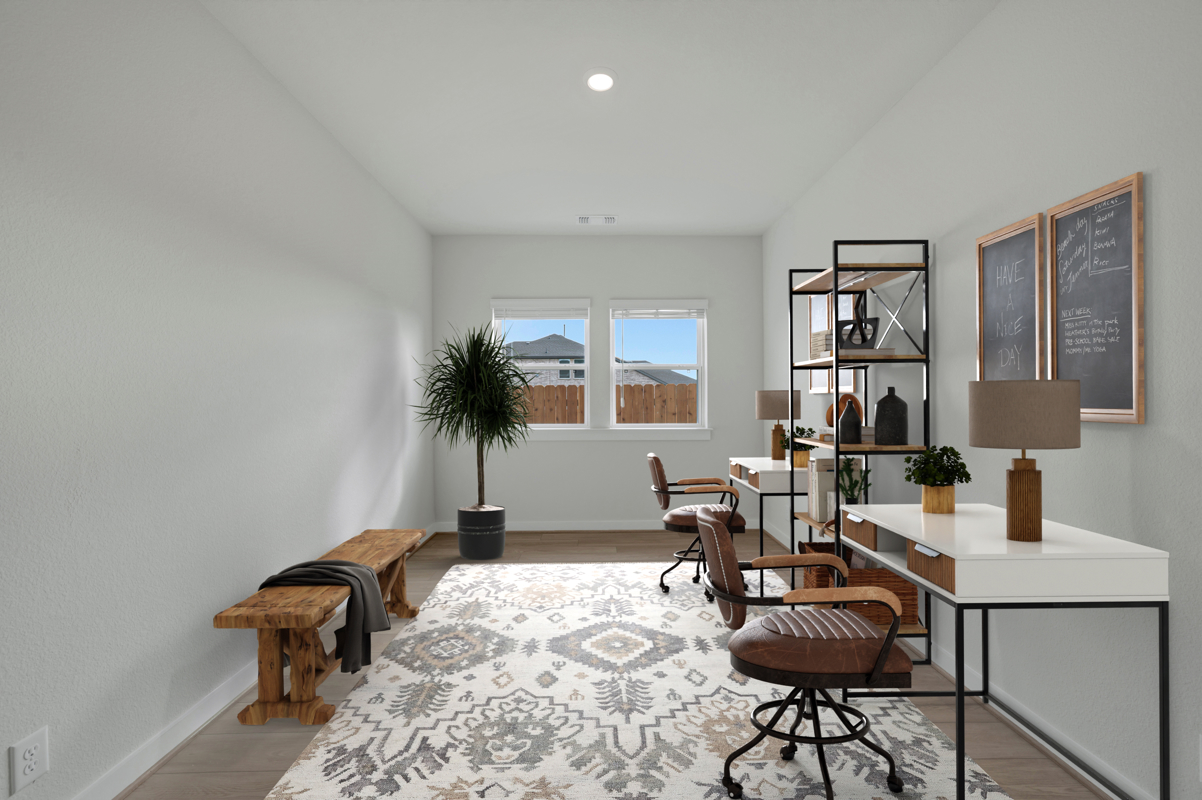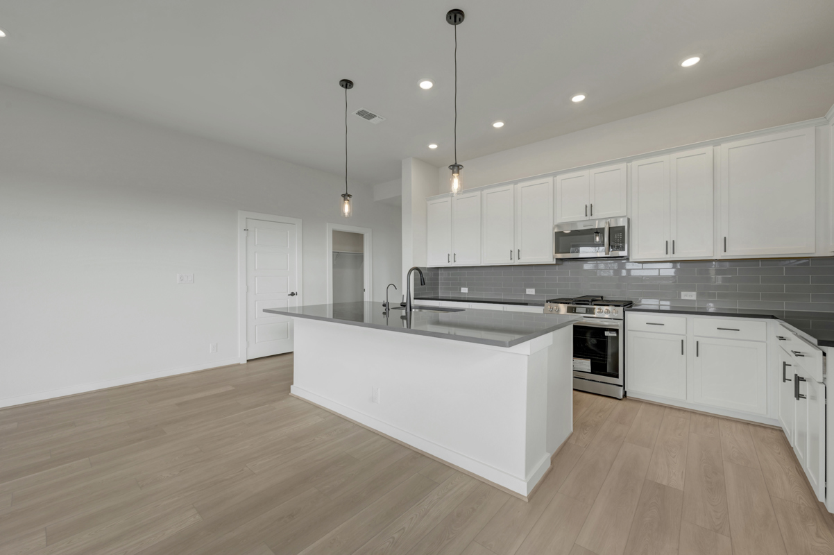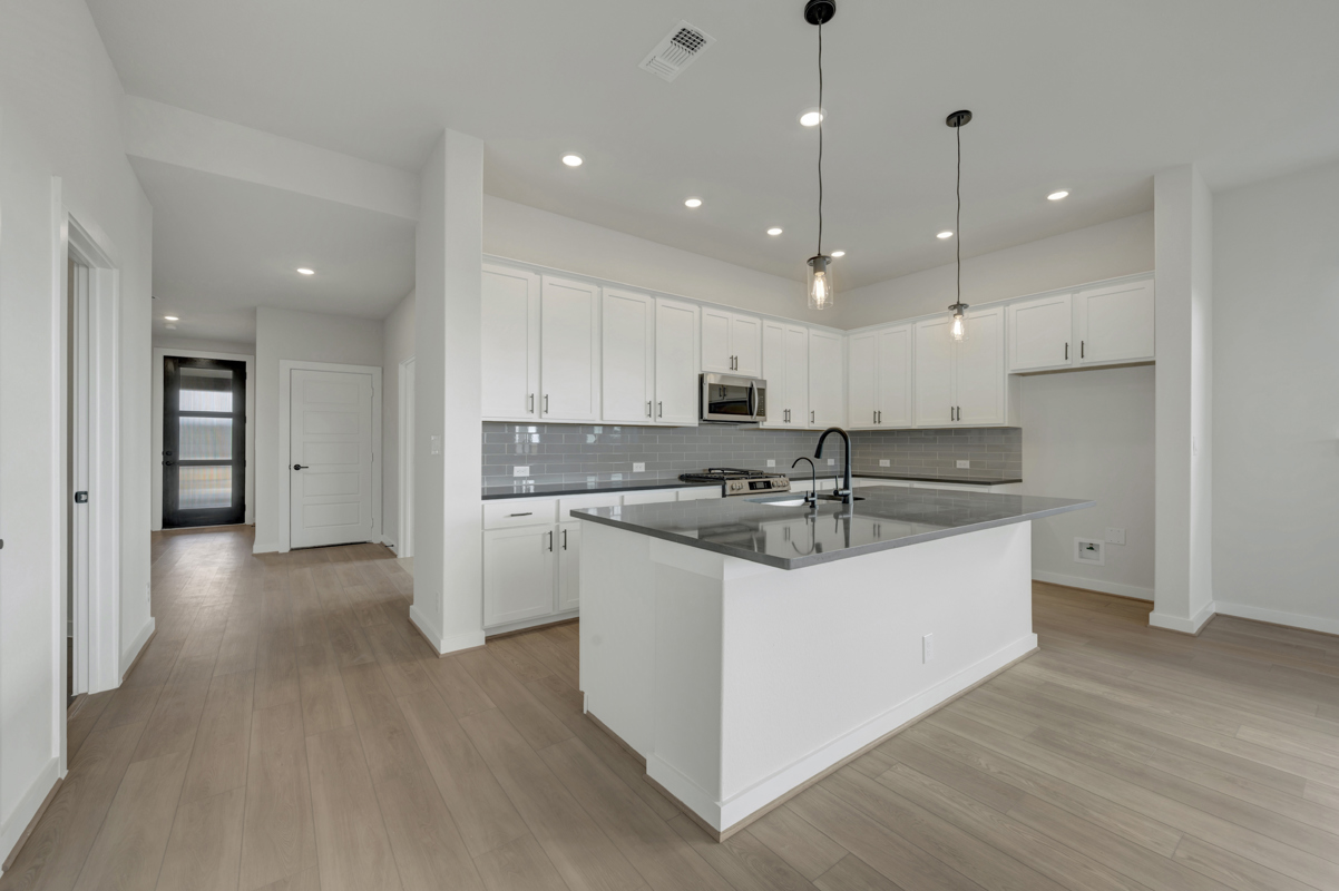 The Poppy by David Weekley Homes in Briggs Ranch blends timeless luxury with top-quality craftsmanship to create a uniquely welcoming single-family home. Vibrant space and limitless potential make the open family and dining areas a decorator’s dream.
