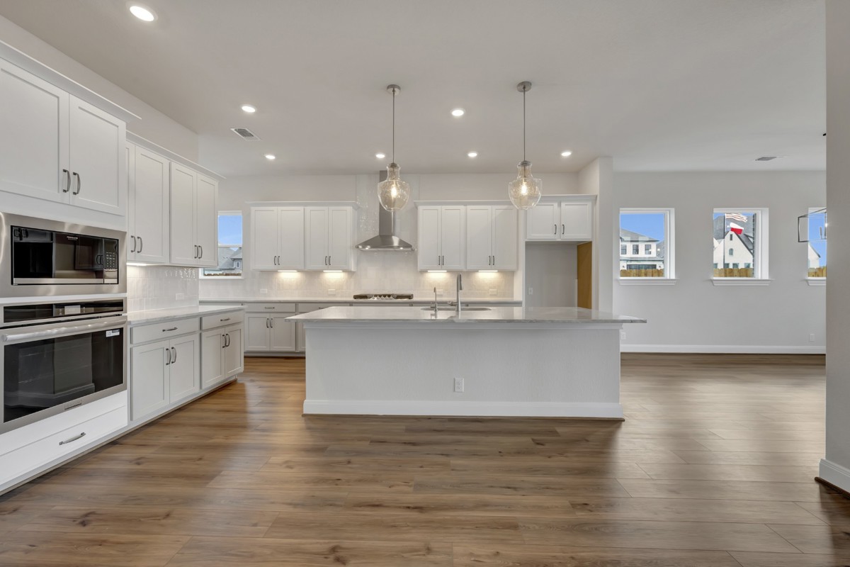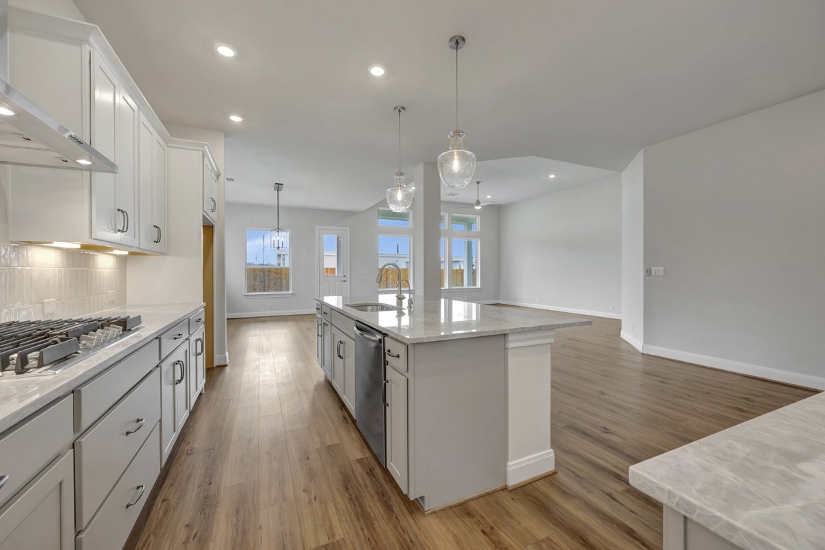 Build your future on a foundation of timeless comforts and top-quality construction with The Grapeland by David Weekley Homes in Briggs Ranch. The chef’s kitchen provides a dine-up island and an out-of-sight storage and prep space.