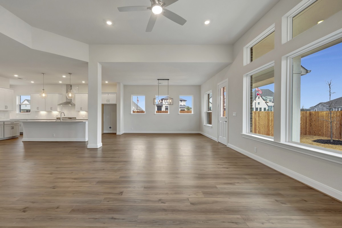 Open sight lines and gentle sunlight allow your personal style to shine in the impressive family and dining spaces overlooking the covered porch and backyard.