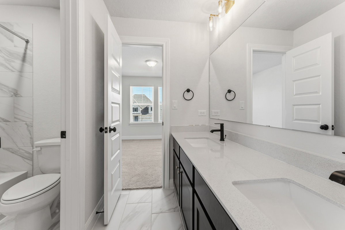 Three junior bedrooms, two full bathrooms and a sunny retreat all share the second level. This home features a covered front porch, welcoming study and a versatile storage bay in the 2-car garage.