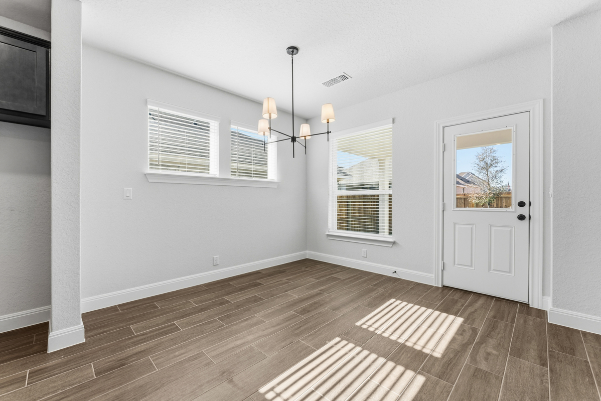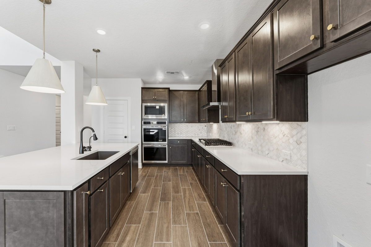 Energy efficiency, individual privacy and elegant gathering spaces grace The Palomar floor plan by David Weekley Homes in Davis Ranch. A tasteful kitchen rests at the heart of this home, balancing style and function while maintaining an open design.