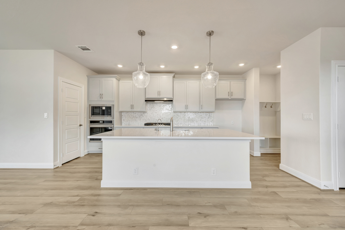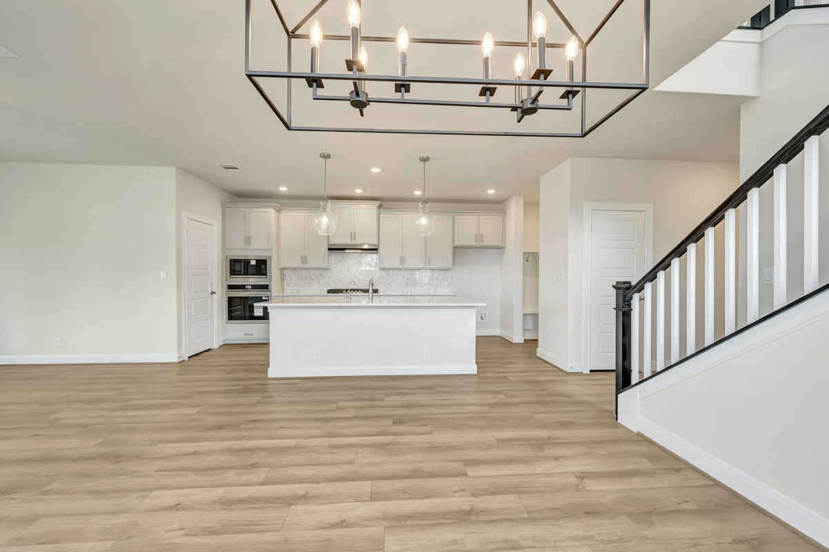 Inside, natural light and open sight lines guide you into the heart of the home. The contemporary kitchen island becomes the centerpiece for connection—where meals are prepared, stories are shared, and the day unwinds overlooking the spacious family and dining areas.