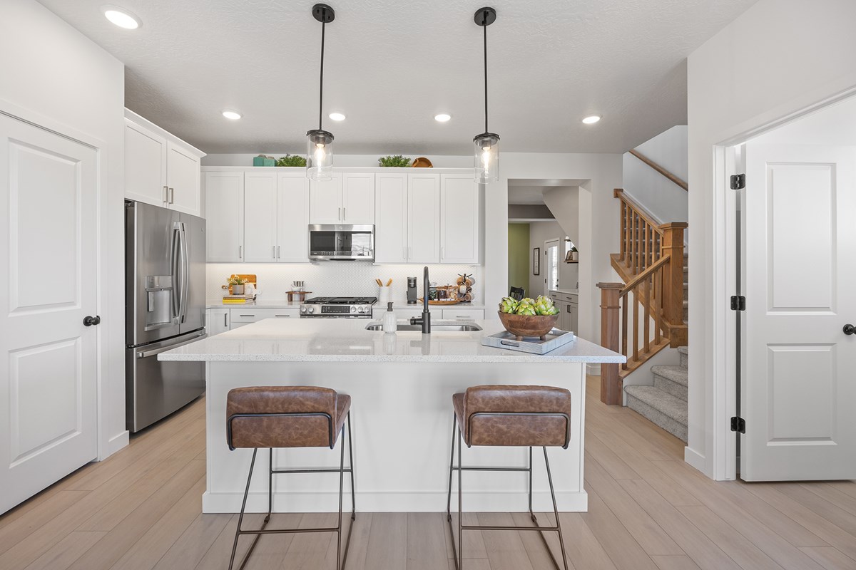 Introducing the Nelson Floor Plan Experience the perfect blend of style, comfort, and energy efficiency in the Nelson floor plan, crafted by David Weekley Homes. Key Features - Spacious Owners Retreat: Walk-in closet, double sink vanity, and relaxing bathroom oasis - Bright and Airy: Large windows throughout, plus stunning side views from the dining room's open window seat area - Cozy Loft Space: Upstairs retreat perfect for relaxation or entertainment - Energy Efficiency: Blown-in insulation for a quieter, more energy-efficient home, qualified as Energy Star - Low Maintenance: HOA-maintained landscaping and snow removal for worry-free living - Convenient Parking: 2-car garage for ample storage Designed for Your Lifestyle Enjoy the perfect balance of comfort, style, and functionality in this beautifully designed town home. Contact Us Today! Phone: 801-231-9545, 385-232-2999Discover Your Dream Home in West Valley City! This home features design package #1, handrails on the 1st and 2nd floor, enlarged shower, left side end enhancements, and front elevation for visibility.