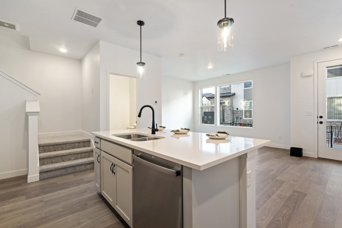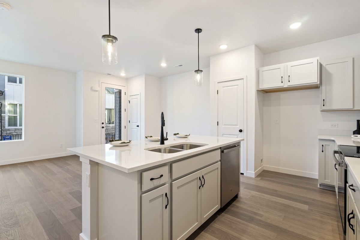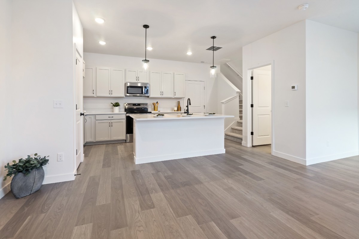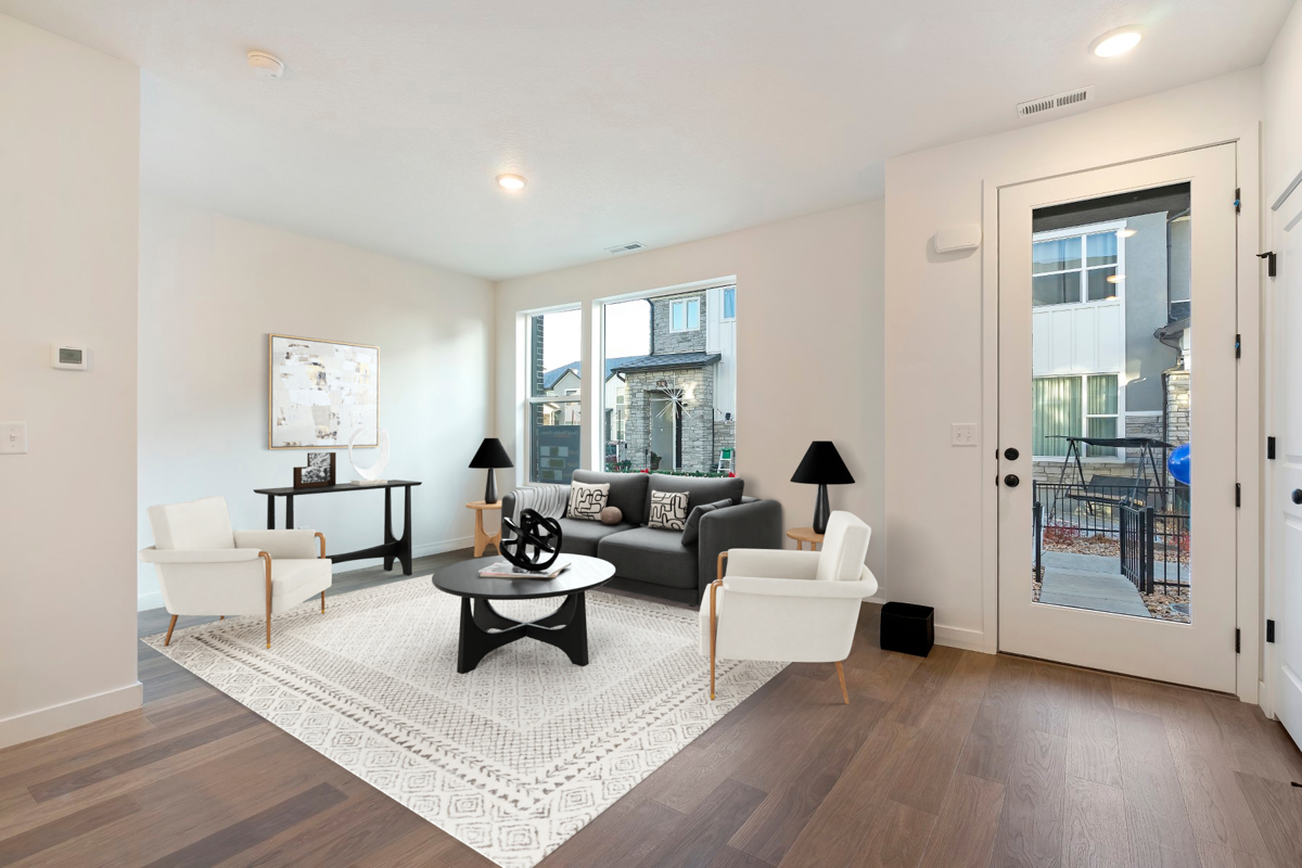 This Nelson middle unit home at Bonneville Towns in West Valley City, Utah, qualifies for the Utah Housing twenty thousand dollar down payment assistance while the program lasts, along with current builder incentives that help make homeownership more attainable. Experience modern living in this meticulously designed townhome located in a brand new gated community, where contemporary aesthetics meet urban convenience.
