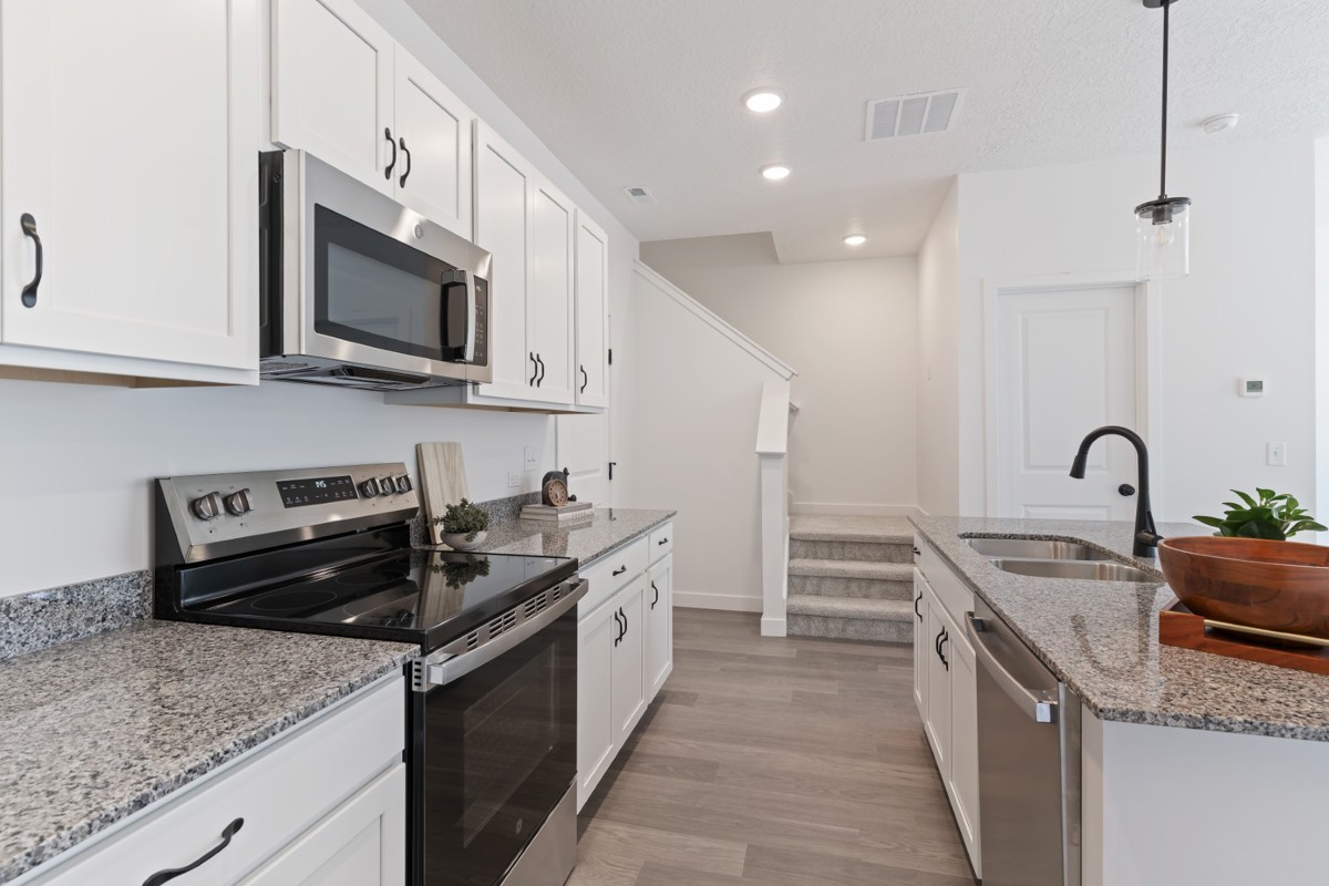 This Nelson middle home in Bonneville Towns presents an incredible opportunity to achieve homeownership with the added benefit of qualifying for Utah Housing’s $20,000 down payment assistance program—while it lasts—plus all current incentives from David Weekley Homes. Located in a brand-new gated community in West Valley City, this thoughtfully designed townhome offers a seamless blend of contemporary aesthetics and everyday convenience.