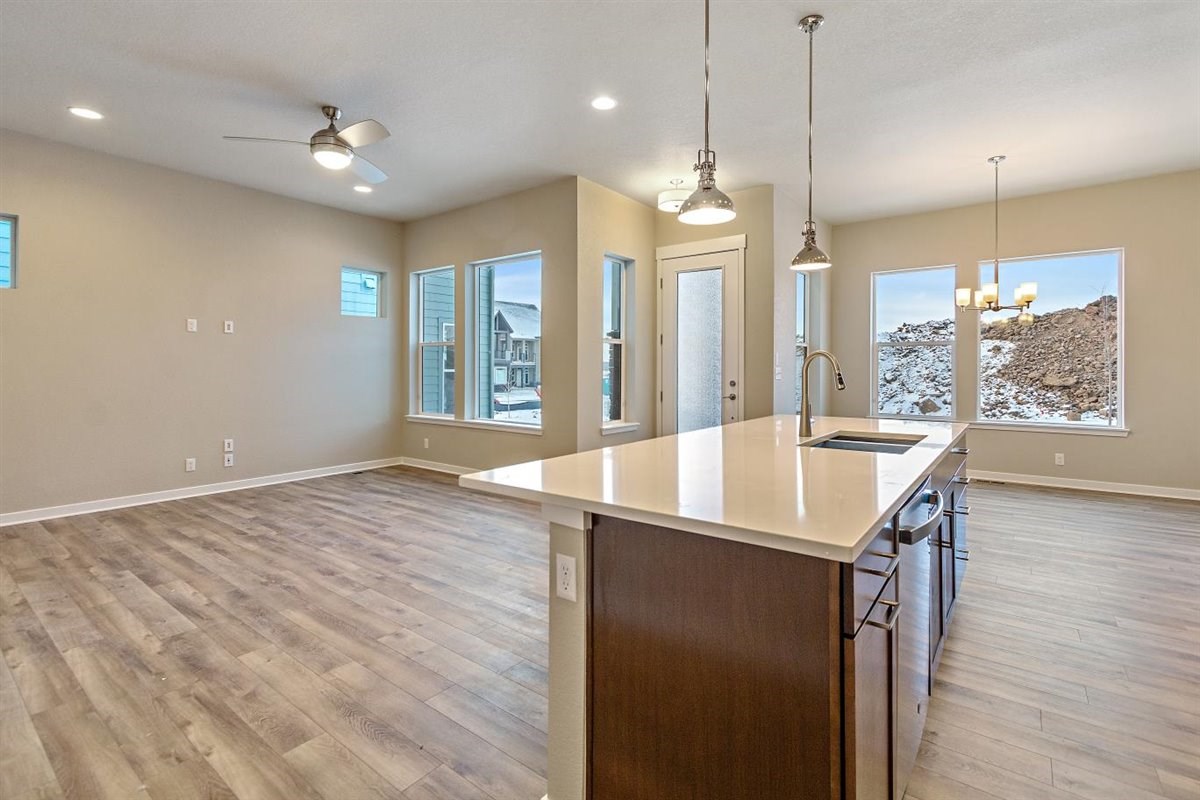 The Edward floor plan by David Weekley Homes in the Denver area strikes a pristine balance between innovative comfort and classic luxury. A large pantry, full-function island and sunny, culinary atmosphere makes the streamlined kitchen a delight at the heart of the home.