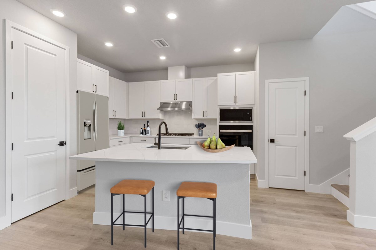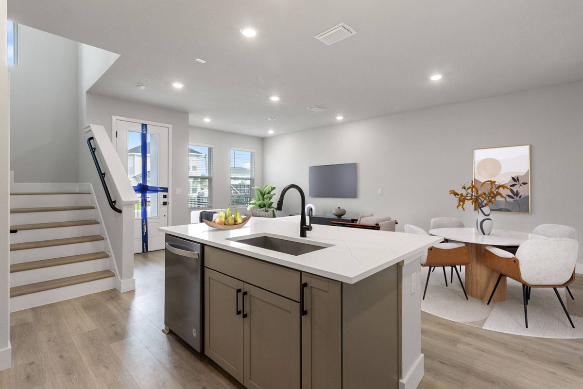 Make your new home dreams a reality with the innovative Waterway floor plan by David Weekley Homes in Persimmon Place. The chef’s kitchen provides a dine-up island and plenty of storage and prep space.