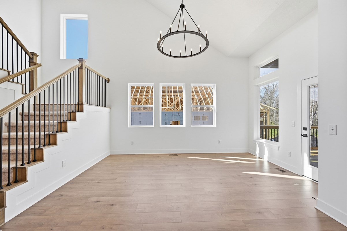 Bring your interior design and lifestyle inspirations to life with The Landram floor plan by David Weekley Homes in Grantham. Open Sight Lines and gentle sunlight allow your personal style to shine in the impressive family and dining spaces.