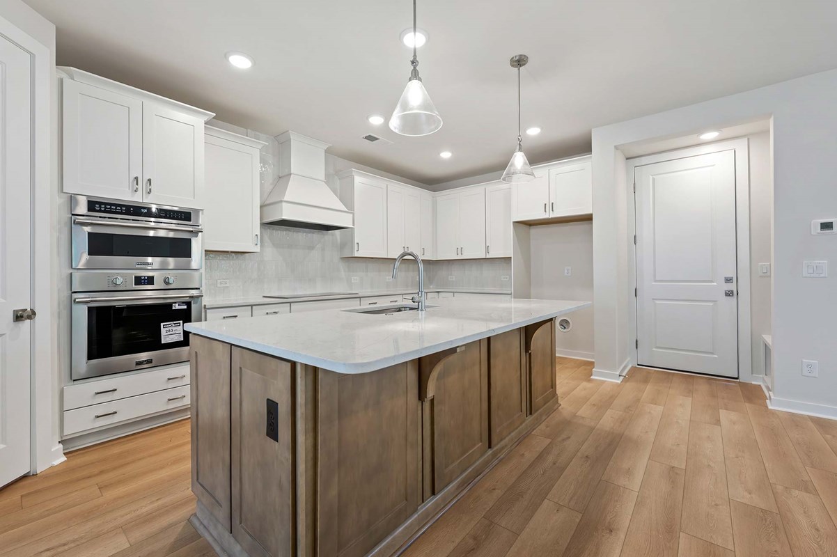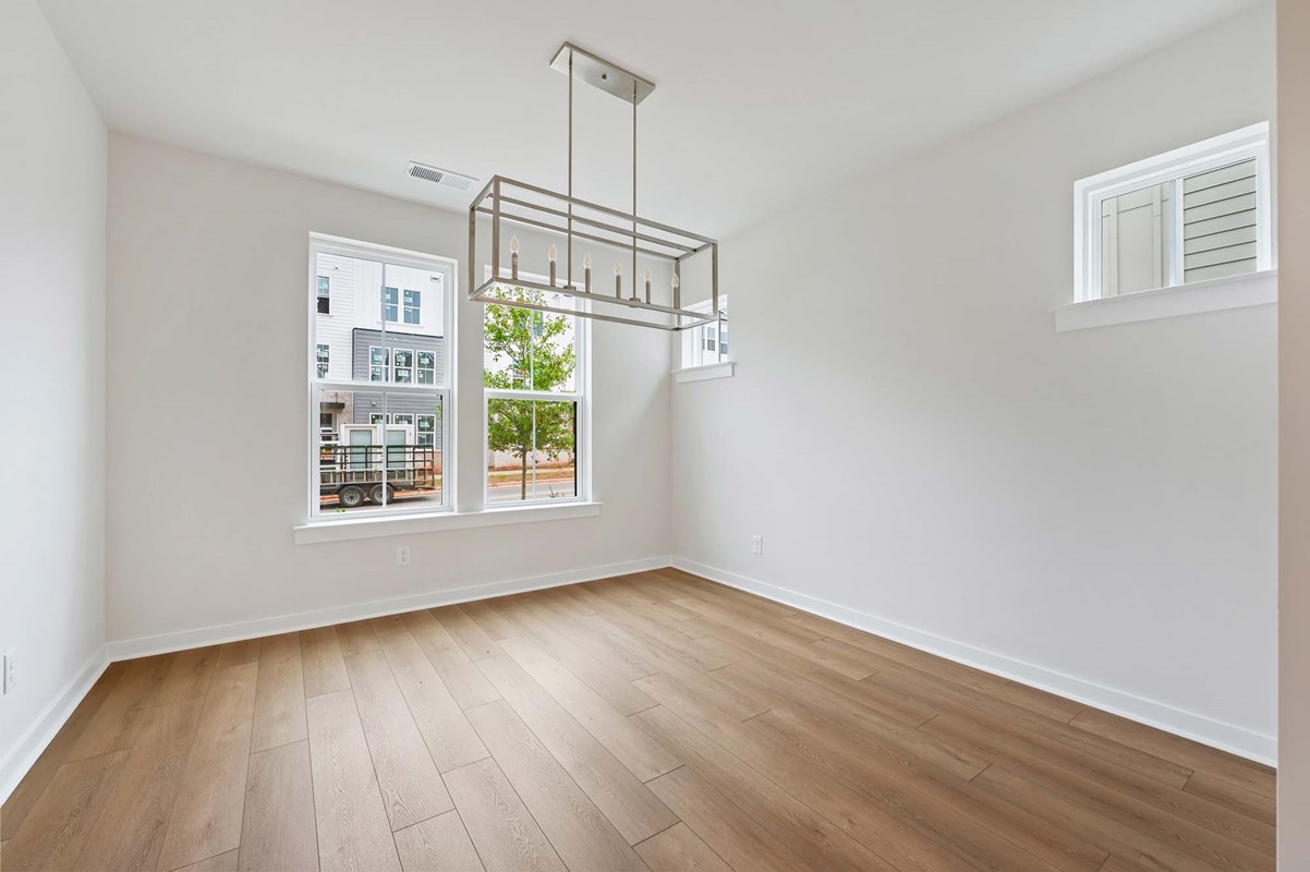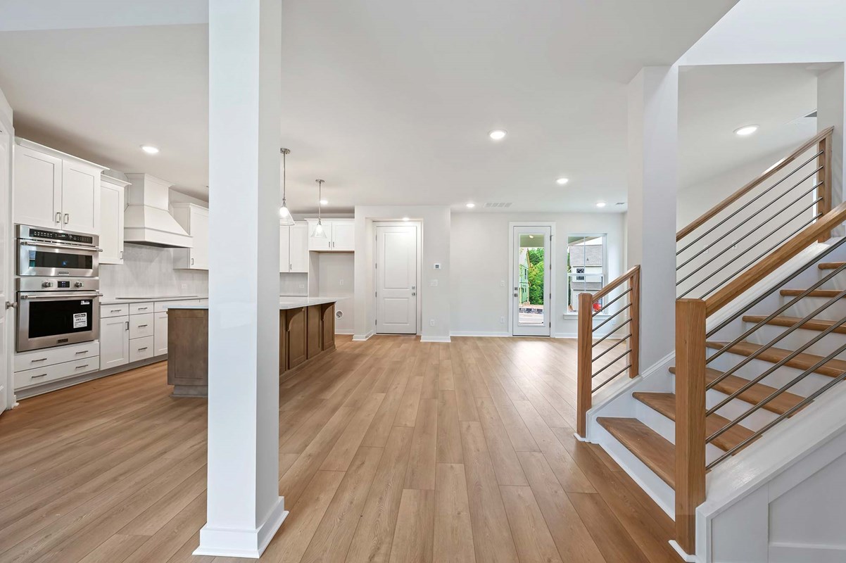 Invite elegant style and streamlined comforts to your life with The Warrington floor plan by David Weekley Homes in The River District. The open and stylish kitchen anchors the first level, connecting the sunny family and dining spaces via uninterrupted sight lines.