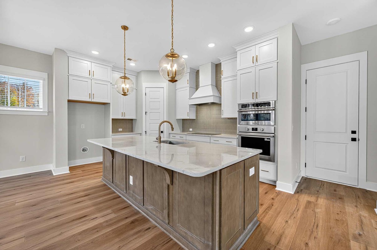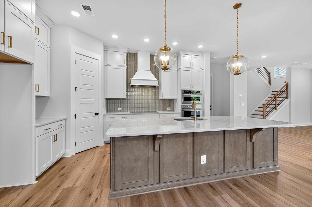 A corner pantry, center island and open sight lines contribute to the culinary layout of the contemporary kitchen. The front study, breezy covered porch and upstairs retreat present ample opportunities for achievements and celebrations.