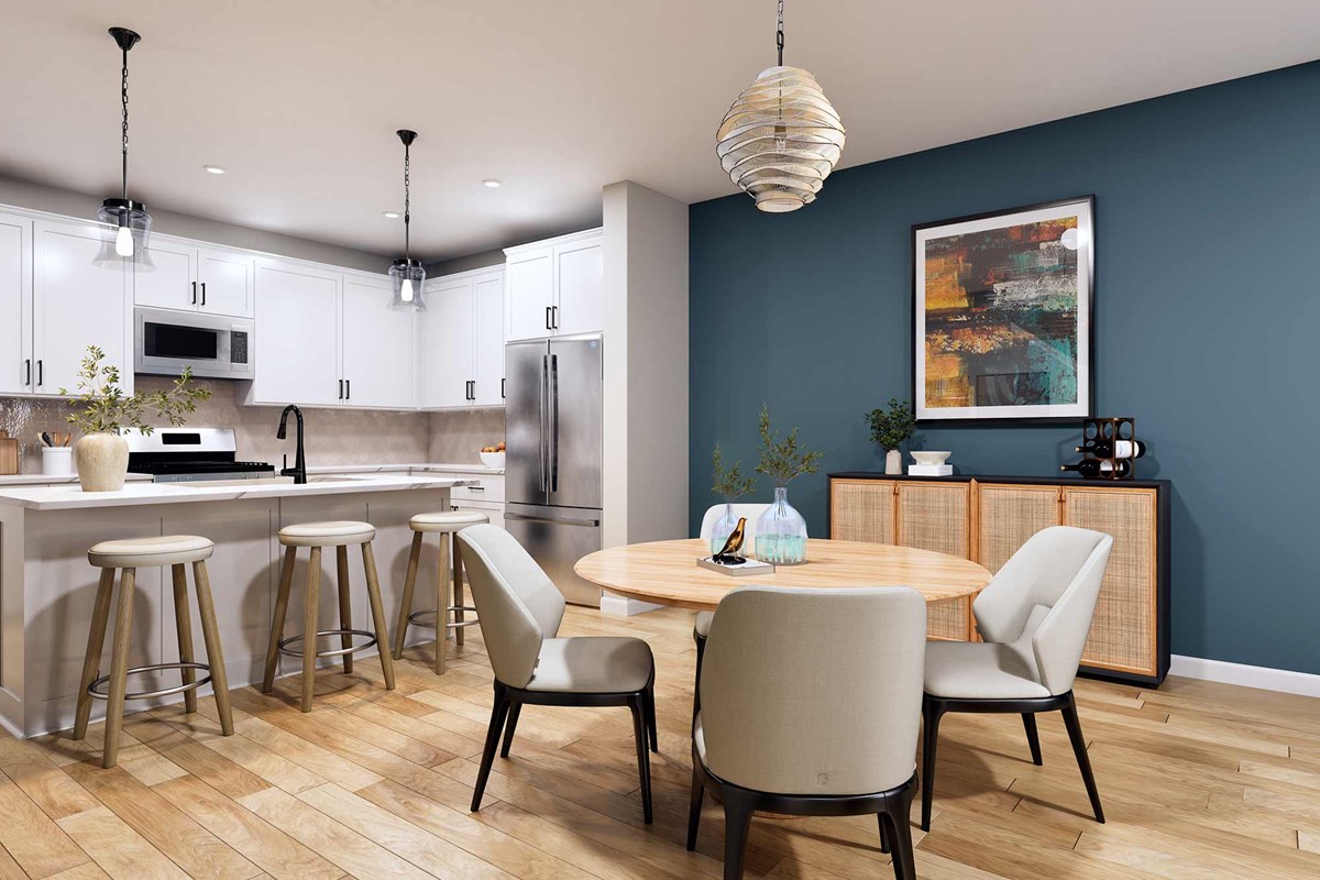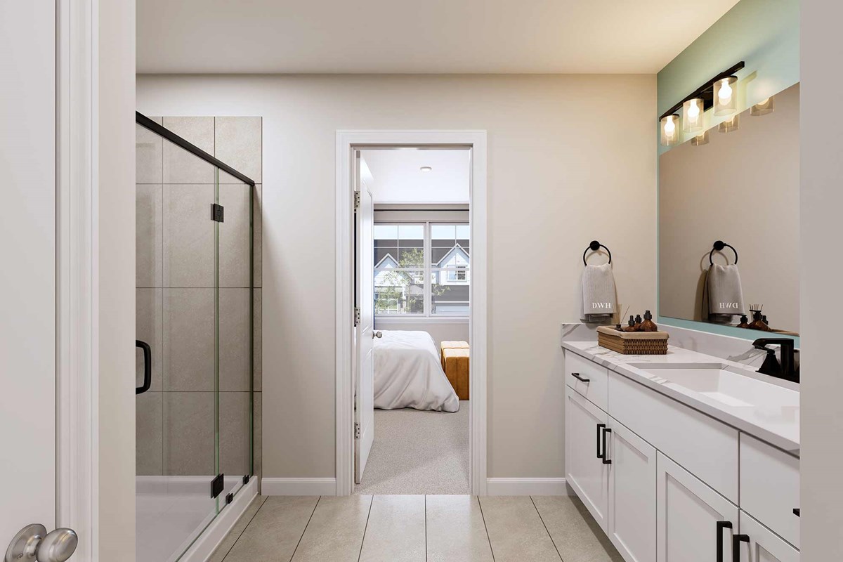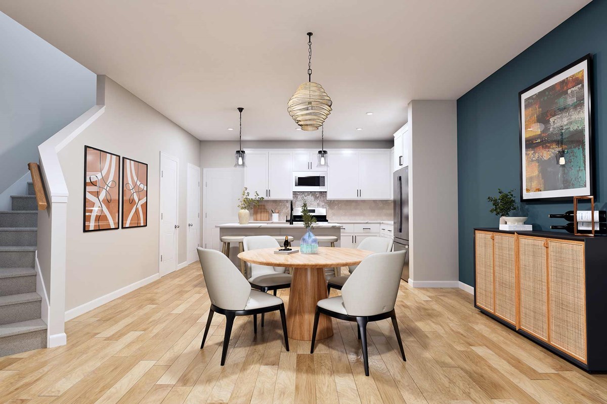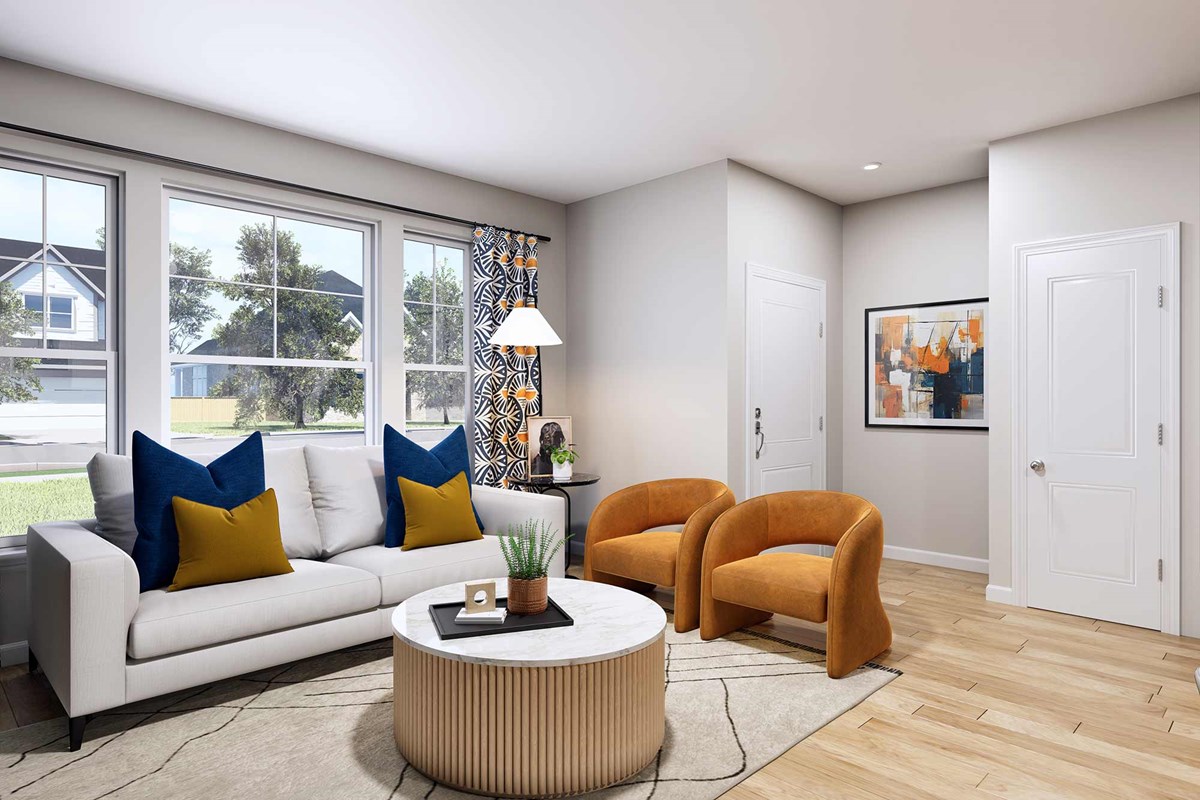 The Cedarspur floor plan by David Weekley Homes in The Townes at Cadia Village mixes elegant style with innovative design to offer a surprisingly spacious and capable townhome lifestyle. The family and dining areas present boundless sight lines shining with natural light on the main level.