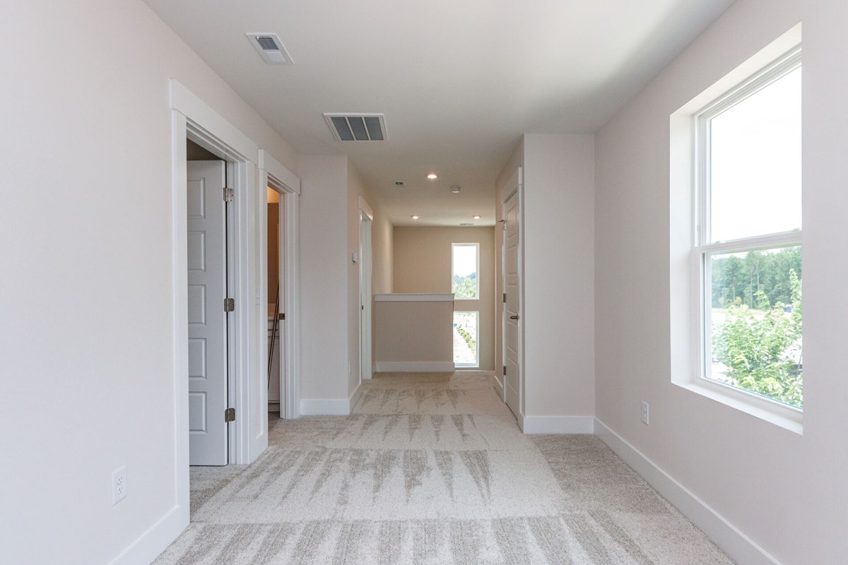A retreat rests at the top of the stairs, creating a lovely space for relaxation away from the home’s main-level gathering areas. Both junior bedrooms provide plenty of space and privacy for kids rooms, home offices or guest accommodations.