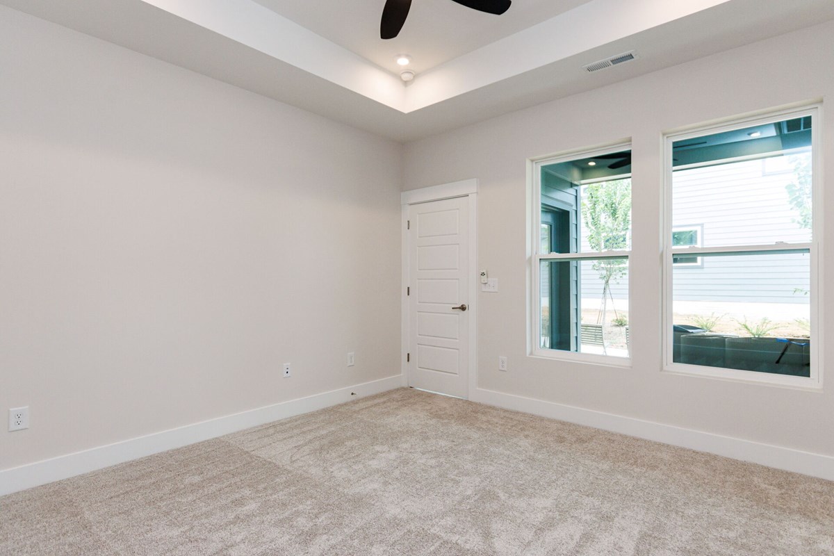 The Owner’s Retreat presents calm, quiet luxuries to make the end of each day superb, including an en suite Owner’s Bath, walk-in closet, and window view of the covered porch.