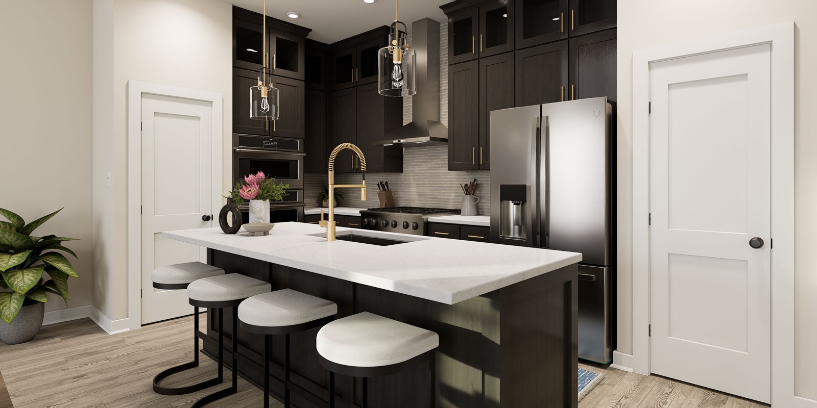 The chef’s kitchen provides a dine-up island and an effortless layout. Start each day refreshed in the Owner’s Retreat, which includes a walk-in closet and a serene Owner’s Bath.