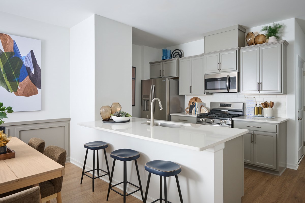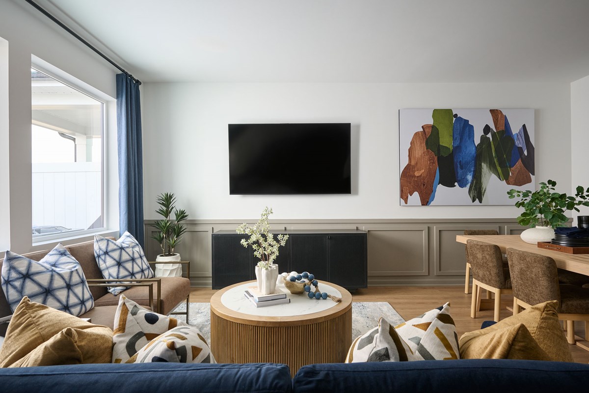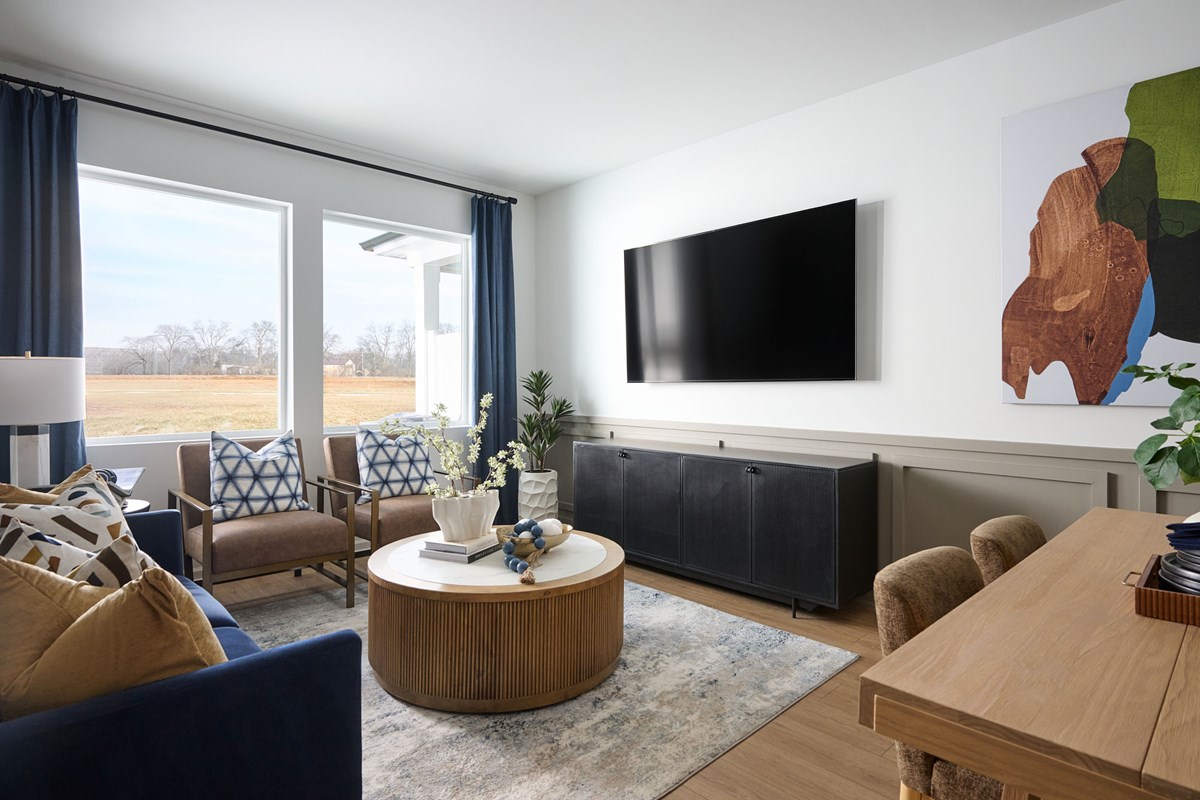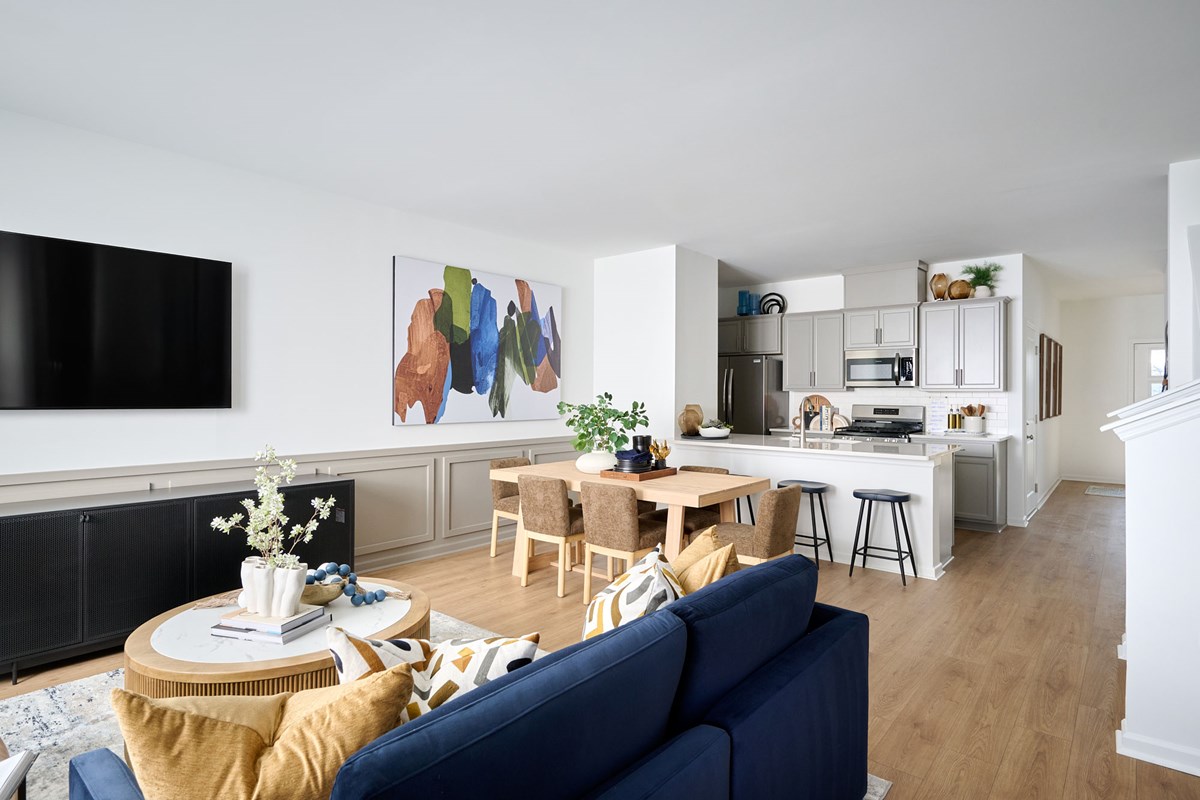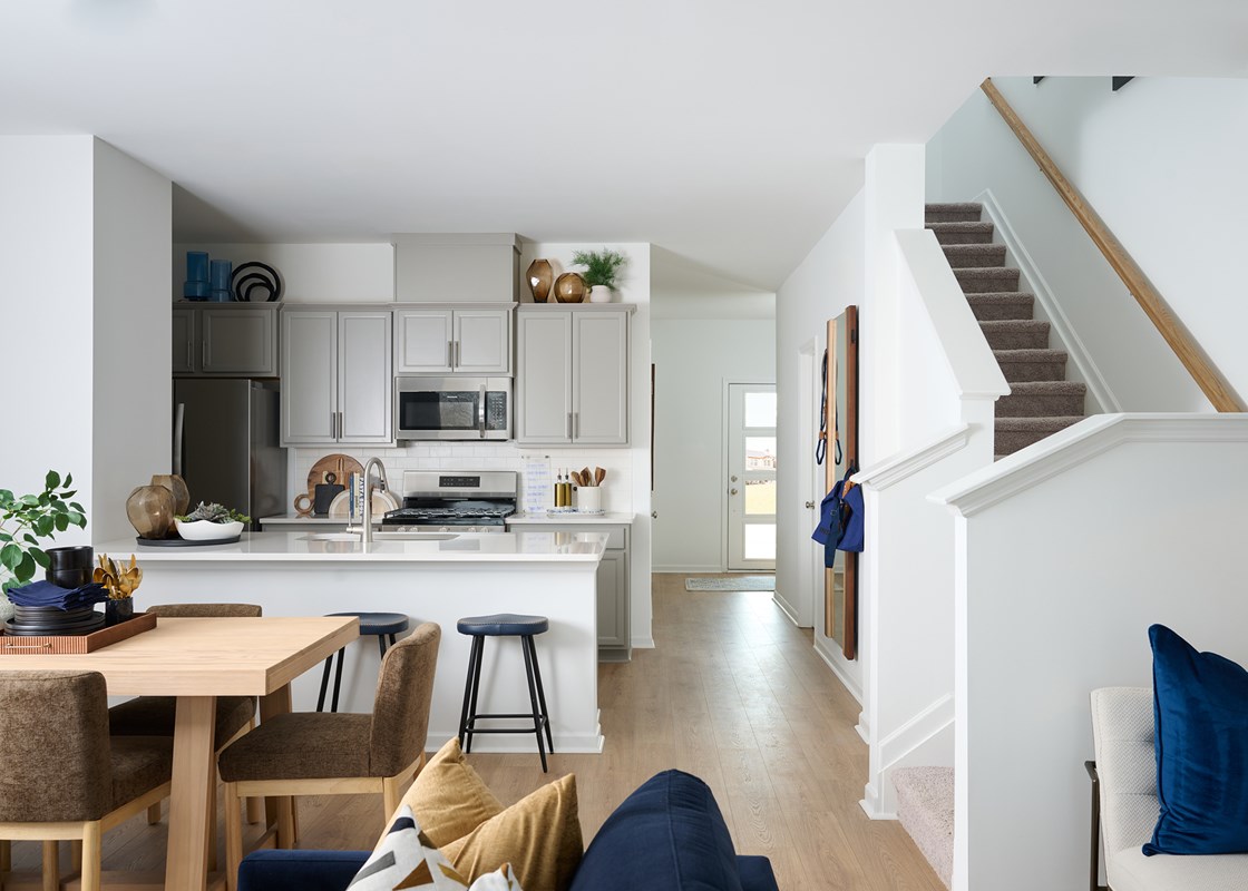 Clean lines and stylish living spaces define The Bunting floor plan by David Weekley Homes in Nexus Townhomes. An open-concept main level blends the family and dining areas into a bright, flexible setting designed for everyday leisure and easy entertaining.