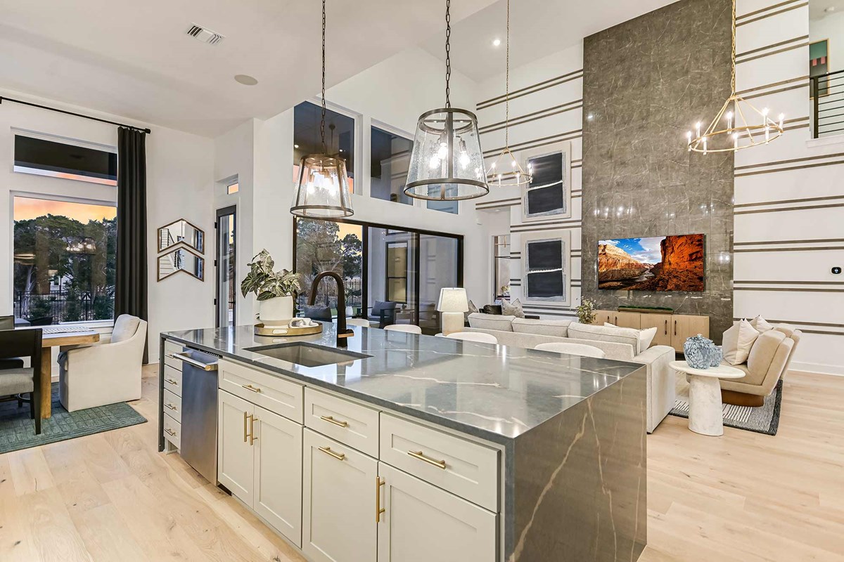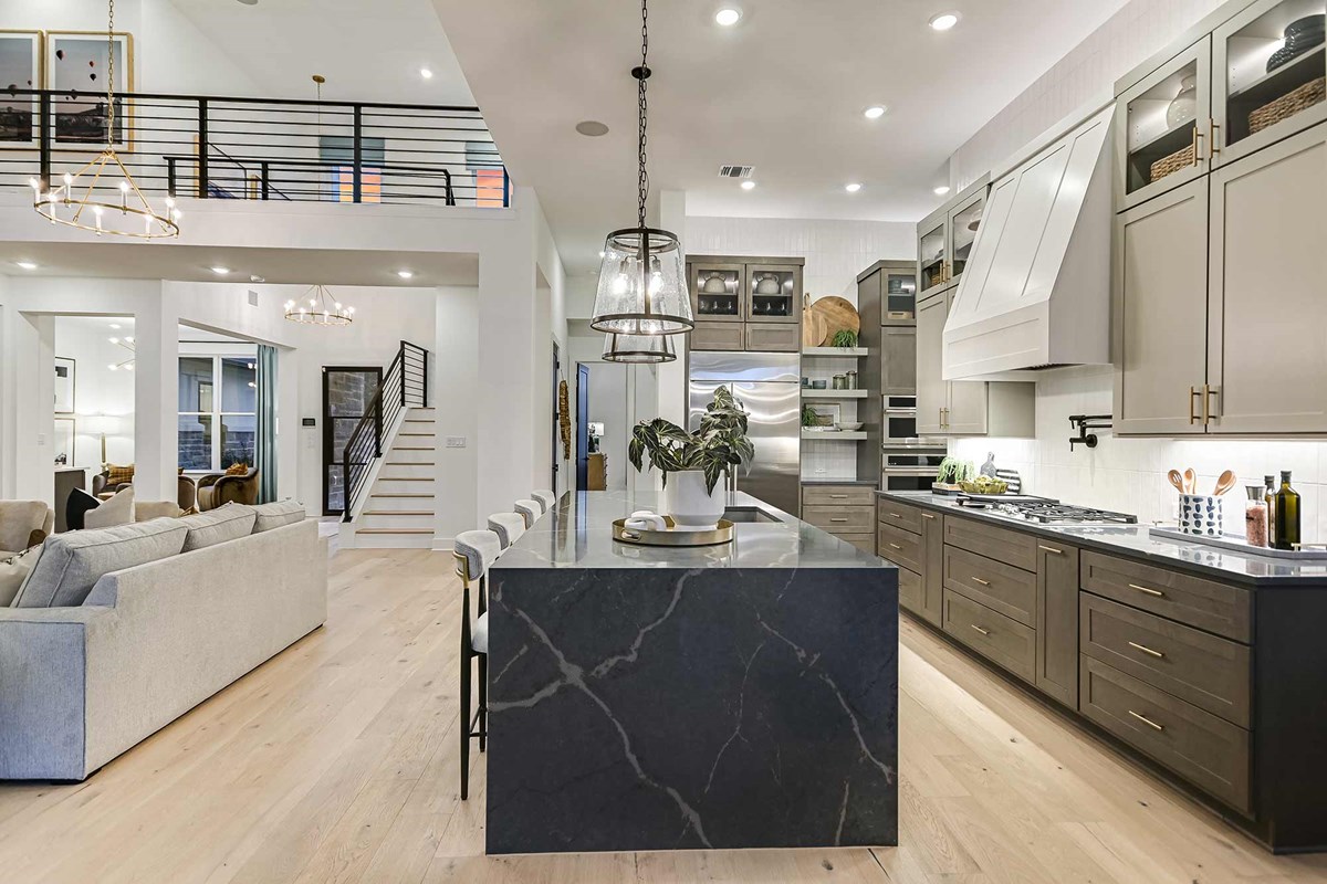 Exceptional craftsmanship combines with genuine comforts in The Delgado floor plan by David Weekley Homes in Austin. Open-concept family and dining spaces showcase the interior design refinements that grant this floor plan exceptional style and livability.