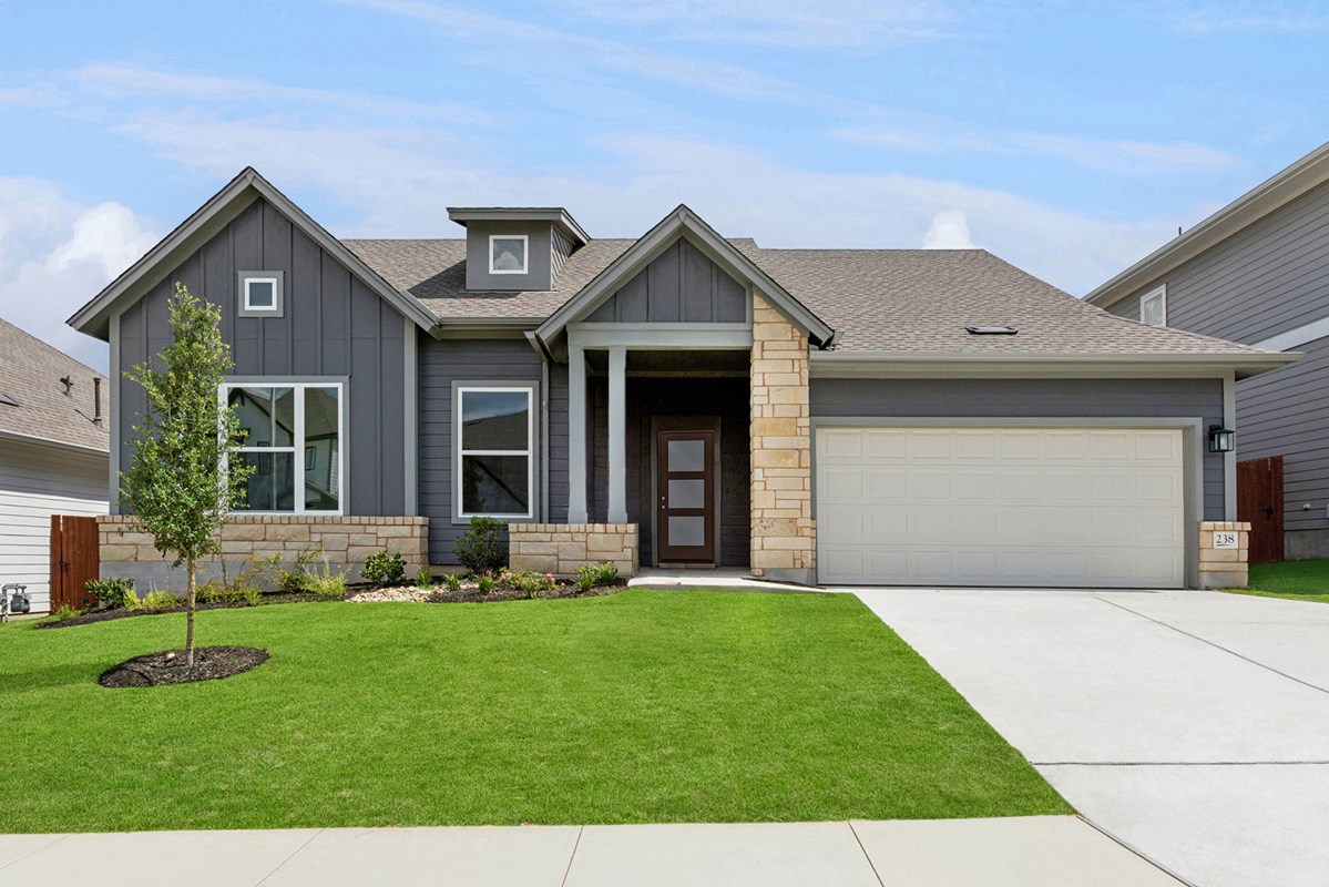 The Carrington combines elegance, comfort, and top-quality craftsmanship in an innovative new home plan. Birthday cakes, pristine dinners, and shared memories of holiday meal prep all begin in the contemporary kitchen nestled at the heart of this home. Sunlight shines on the open-concept family and dining space, where you can showcase your personal style. Retire to the quiet Owner’s Retreat, where an en suite bathroom and large walk-in closet makes it easy to pamper yourself at the end of a hard day. The front bedrooms provide plenty of privacy for growing residents and out-of-town guests. Conversations with loved ones and quiet evenings to yourself are equally serene in the shade of your covered porch. Bonus storage, expert design, and our EnergySaver™ features make it easy to love each day in this wonderful new home plan.