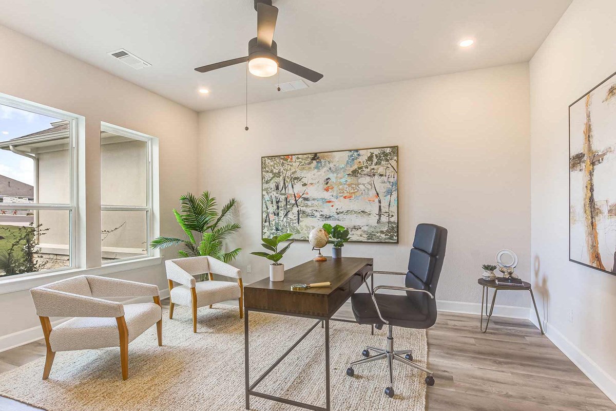 Design the specialty room you’ve been dreaming of in the open study. We can’t wait for you to experience Our World-class Customer Service with this gorgeous new home in Leander Estates.