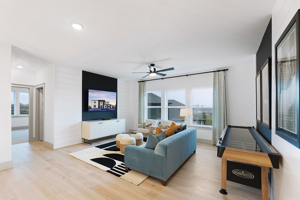 Gather around the kitchen island to enjoy delectable treats and celebrate special achievements. The covered porch, TV room, upstairs retreat, and a pair of study spaces on the first floor provide an abundance of specialty spaces ready to adapt to your lifestyle.