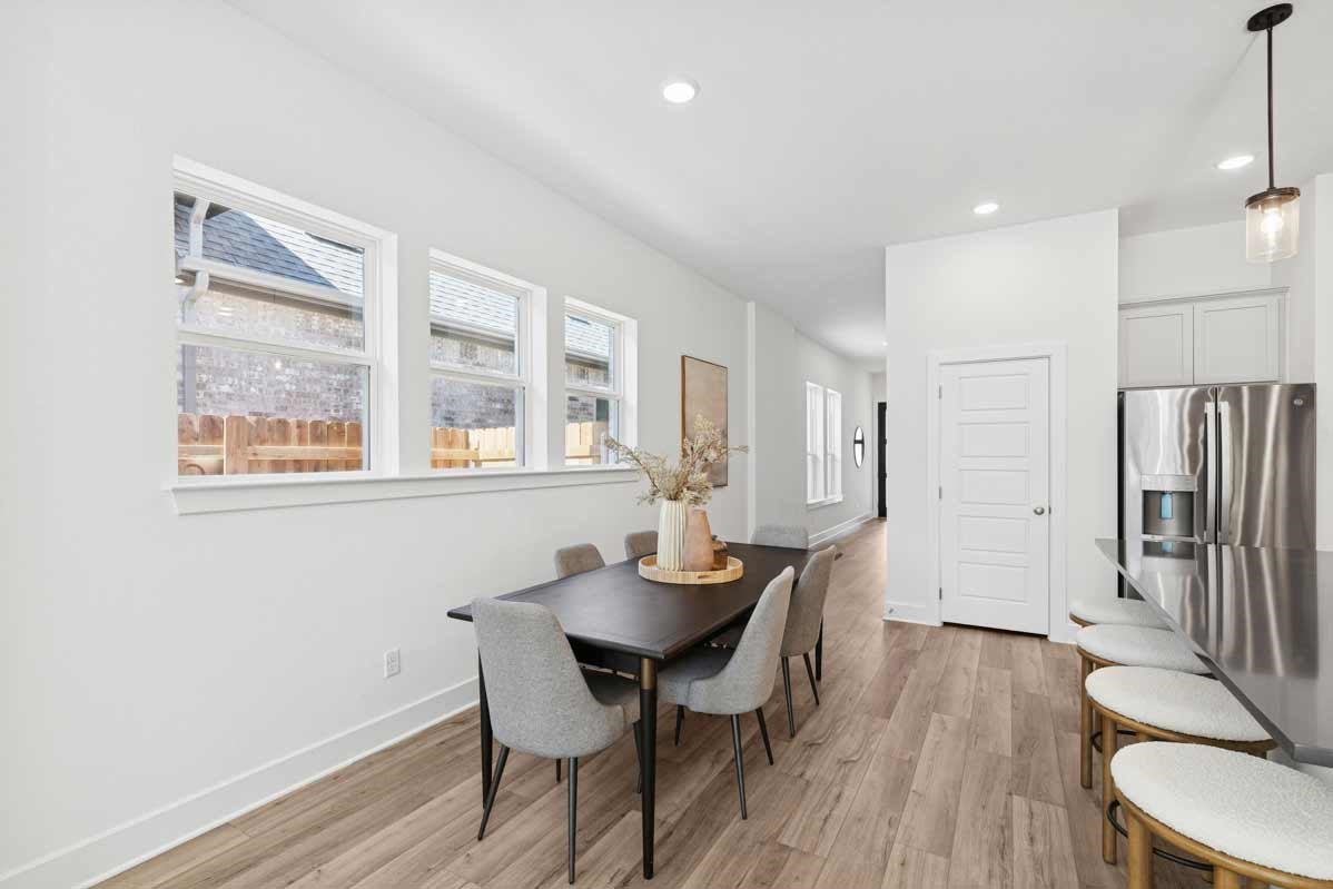 Exceptional craftsmanship combines with genuine comforts in The Cleveland floor plan by David Weekley Homes in South Brook. Holiday gatherings and relaxing evenings in will both be impressive in the beautiful family and dining spaces, both with a window view of the covered porch.