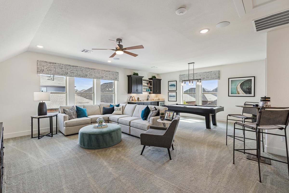 Splendid spaces and modern comforts blend to create the beautiful Ridgemont luxury home plan. Furnish the graceful living space to reflect your ideal décor and interior design flair. The epicurean kitchen supports your culinary adventures and includes a full-function island. Enjoy a book and your favorite beverage from the calm of your covered patio. Craft your ultimate home office or an innovative specialty room in the captivating front study. A paradise bathroom and sprawling walk-in closet contribute to the everyday vacation of your Owner’s Retreat. Unique personalities and individual styles shine in the delightful spare bedroom. Contact our Internet Advisor to learn more about the bonus storage spaces and built-in conveniences in this fantastic new home plan.