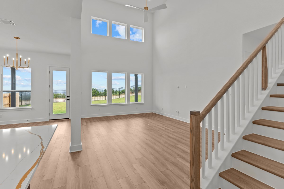 Explore the superb balance of energy-efficiency, individual privacy and elegant gathering spaces in The Camellia floor plan by David Weekley Homes in Celina, Texas. The open-concept gathering spaces offer elegant opportunities to apply your interior décor style.