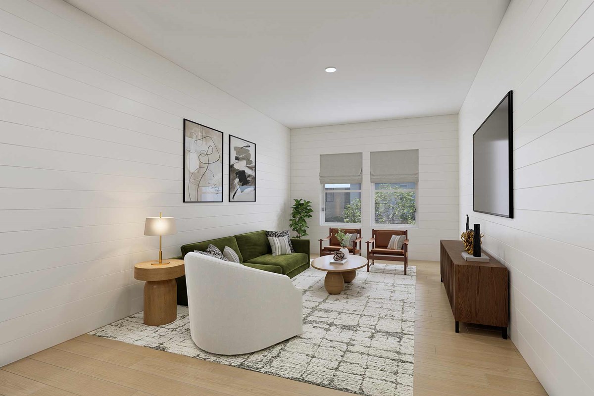 A study and guest suite grace the front of this home while three spacious bedrooms, two full bathrooms and an additional gathering space rest on the upper level.