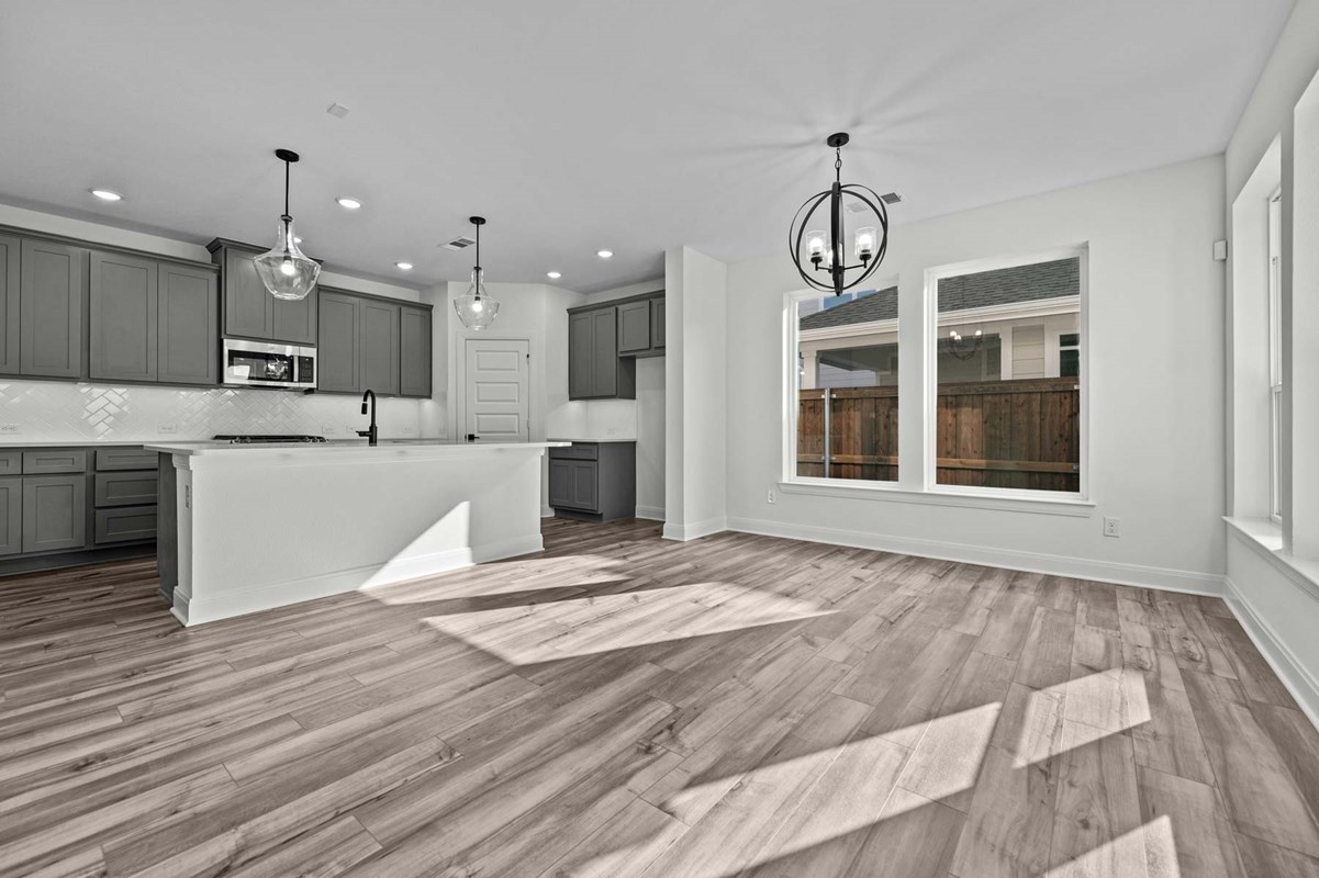 Elevate your lifestyle in the streamlined comfort and effortless luxury of The Herald floor plan by David Weekley Homes. Natural light shines on your open-concept living spaces through energy-efficient windows, highlighting your interior design style.