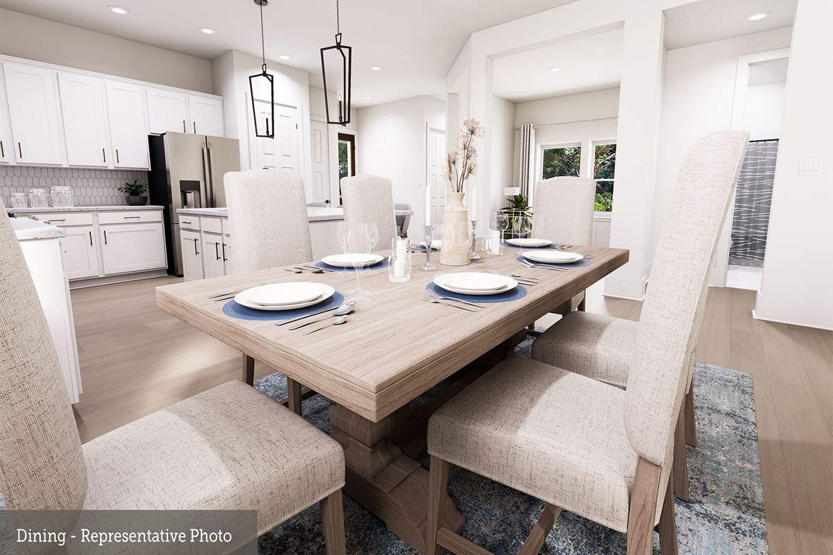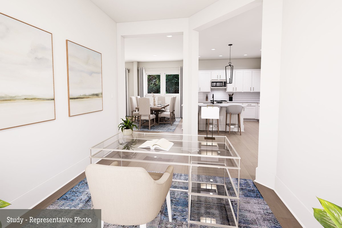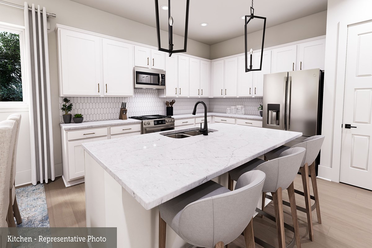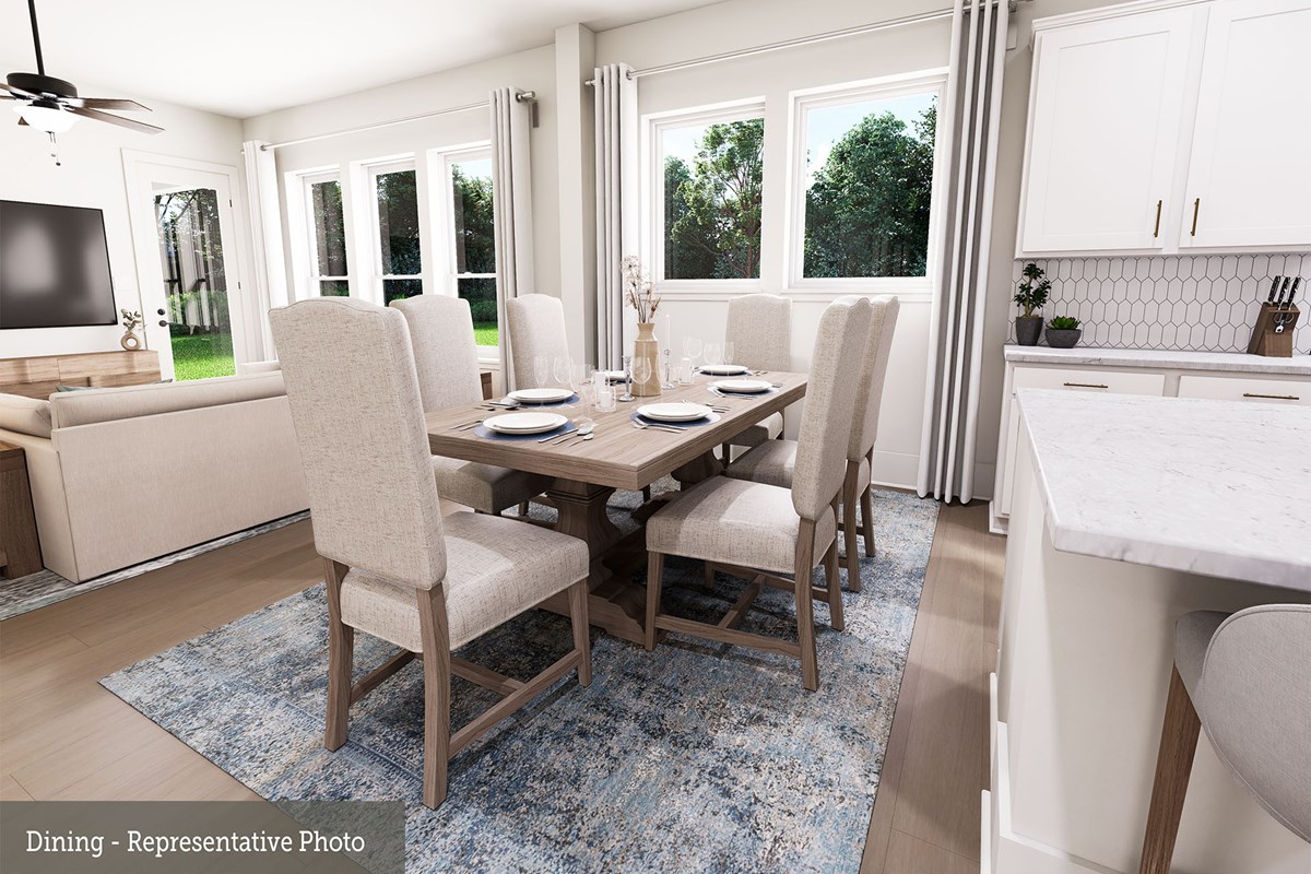 Invite elegant style and streamlined comforts to your life with The Boerne floor plan by David Weekley Homes in Creekshaw. The elegantly arranged kitchen anchors the first level, connecting the open study, sunny family and dining spaces, and covered porch via uninterrupted sight lines.