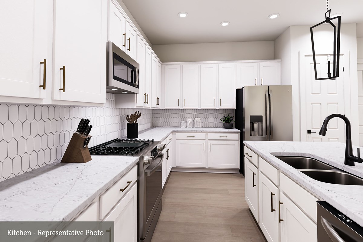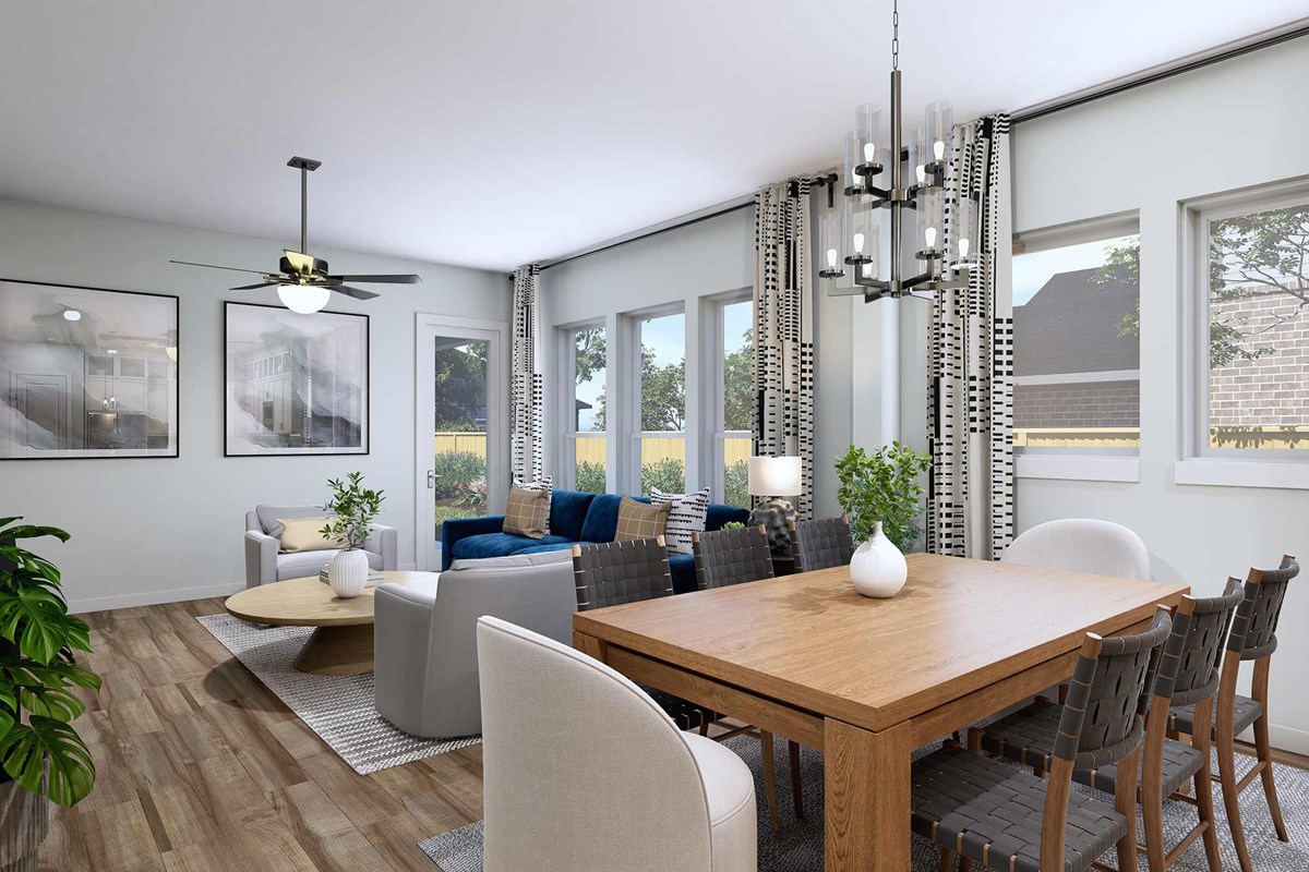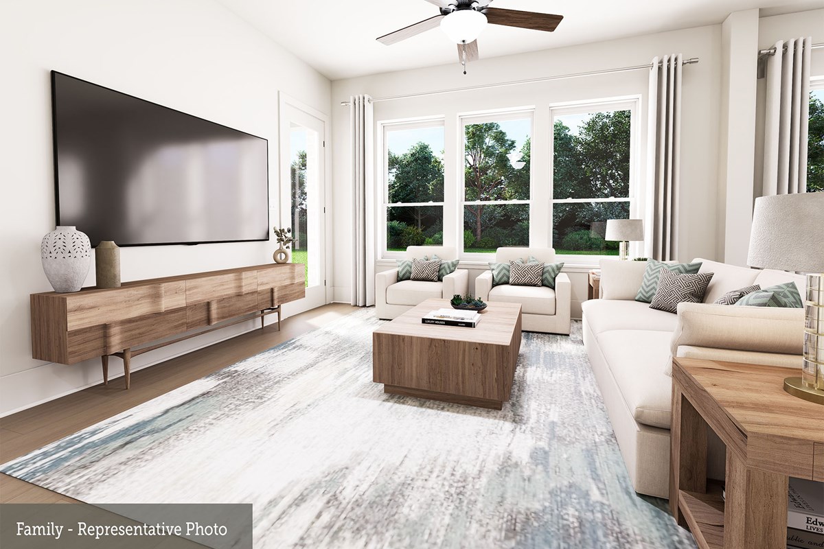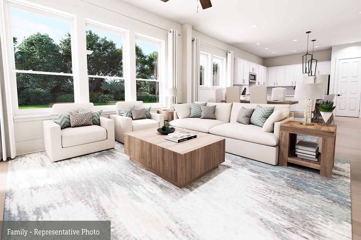 Invite elegant style and streamlined comforts to your life with The Boerne floor plan by David Weekley Homes in Creekshaw. The elegantly arranged kitchen anchors the first level, connecting the open study, sunny family and dining spaces, and covered porch via uninterrupted sight lines.