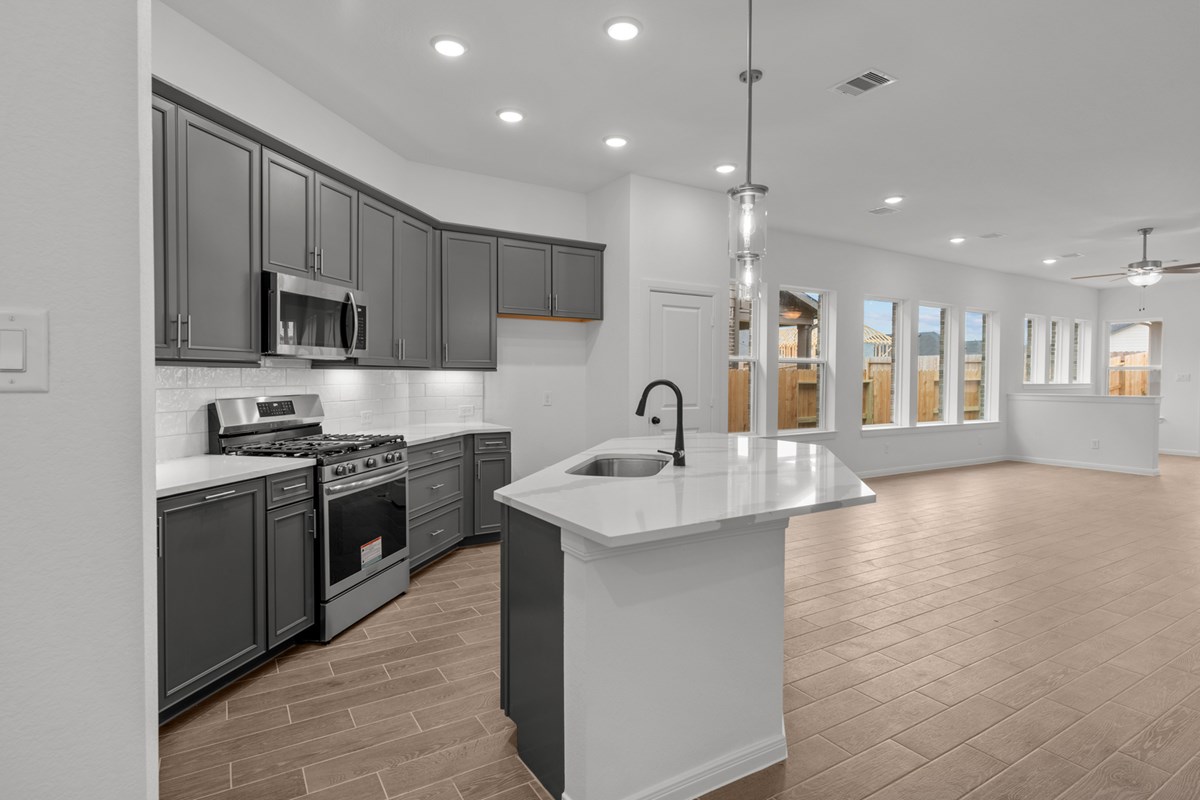 Build your family’s future with the timeless comforts and top-quality craftsmanship of The Arlene floor plan by David Weekley Homes in The Grand Prairie. Prepare, present and enjoy your culinary masterpieces on the contemporary kitchen’s island overlooking the spacious family and dining areas.