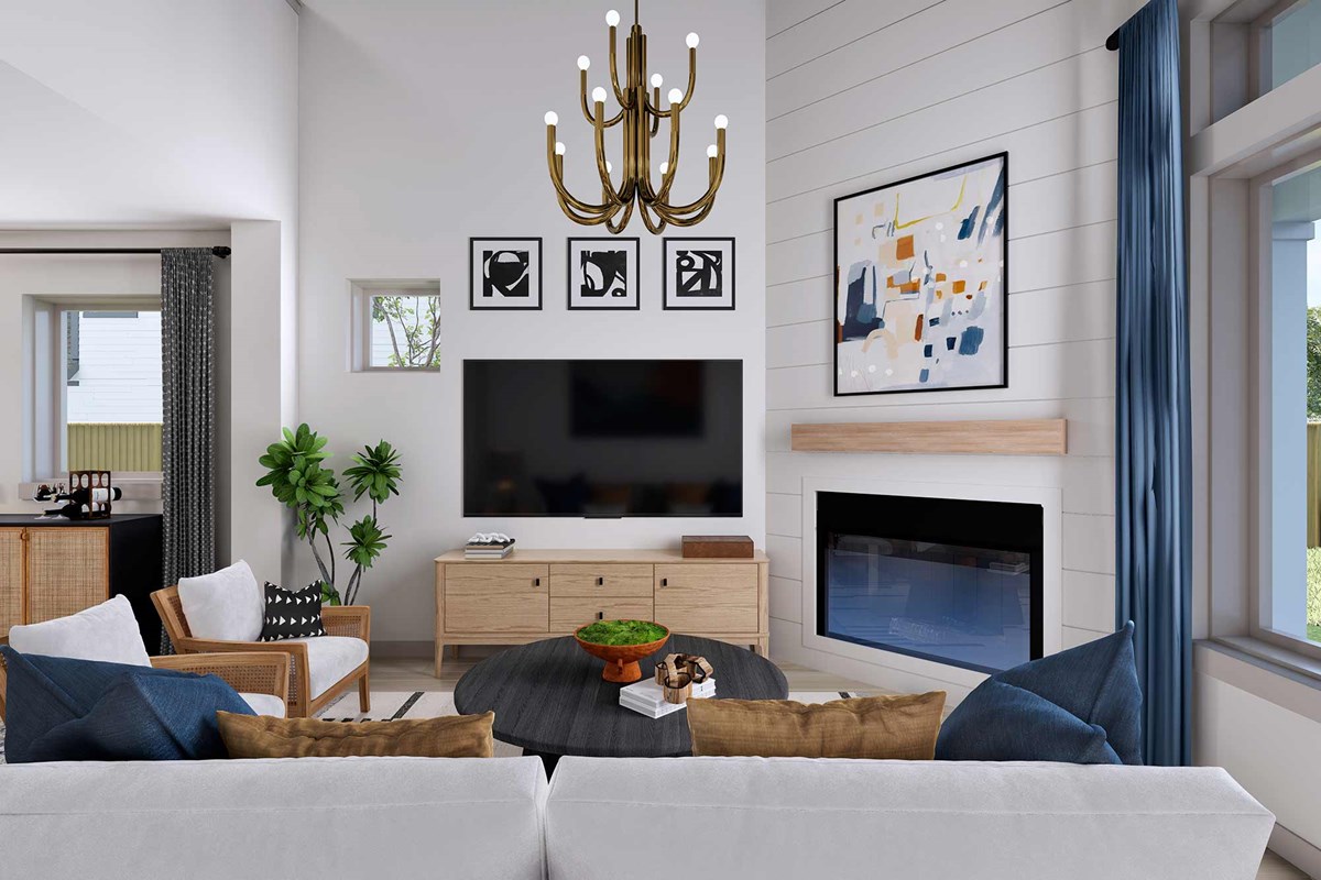 Timeless and inventive design combine to create The Kerrville floor plan by David Weekley Homes in The Grand Prairie. Open sight lines and flowing traffic patterns allow for breezy movement through the kitchen, dining and family spaces to make entertaining guests effortless.