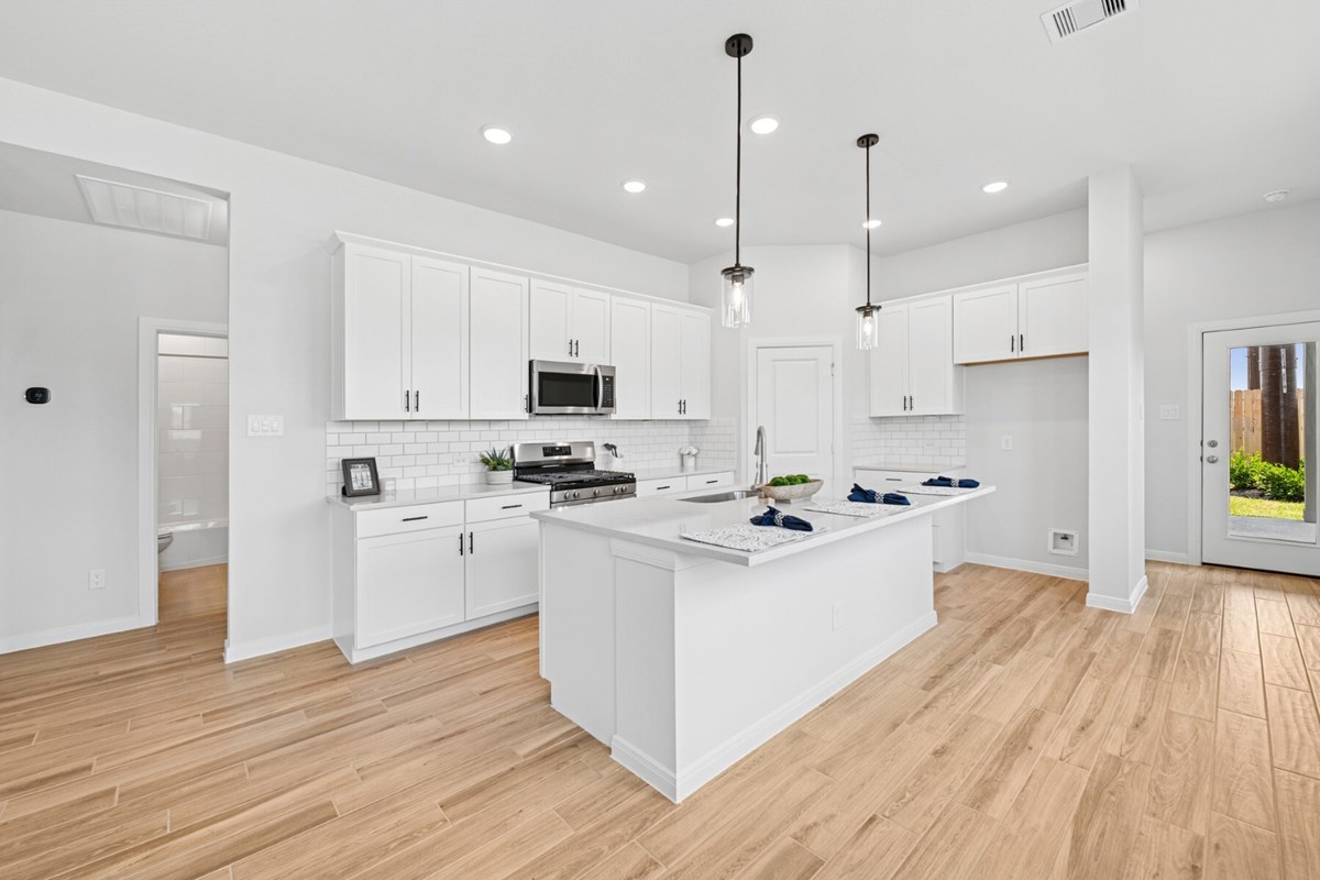 The Woodlee floor plan by David Weekley Homes offers the space, style, and expert craftsmanship you need to live your best life in Hockley, Texas. Gather the family around tasteful kitchen’s island to enjoy delectable treats and celebrate special achievements.