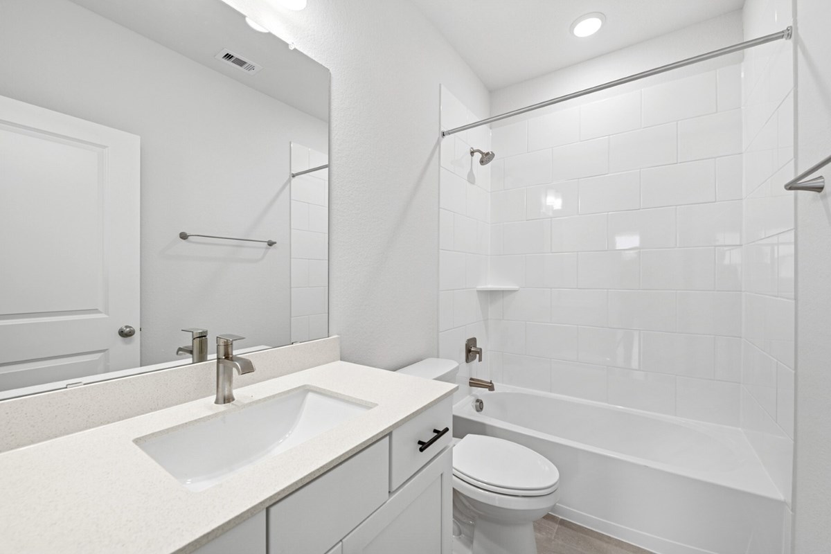 Two secondary bedrooms rest on either side of a shared bathroom. Your blissful Owner’s Retreat offers an everyday escape from the outside world, and includes a lovely Owner’s Bath and a large walk-in closet.